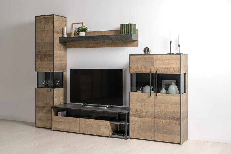 Шкаф-пенал с витриной Трувор 13.205 дуб гранж песочный, интра