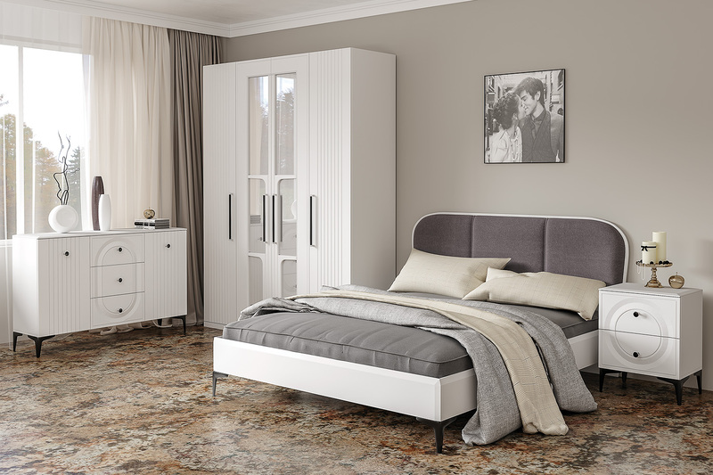 Кровать Валенсия 11.36.02 с ортопедическим основанием белый РЕ шагрень, белая шагрень ПВХ, велюр Велутто 19