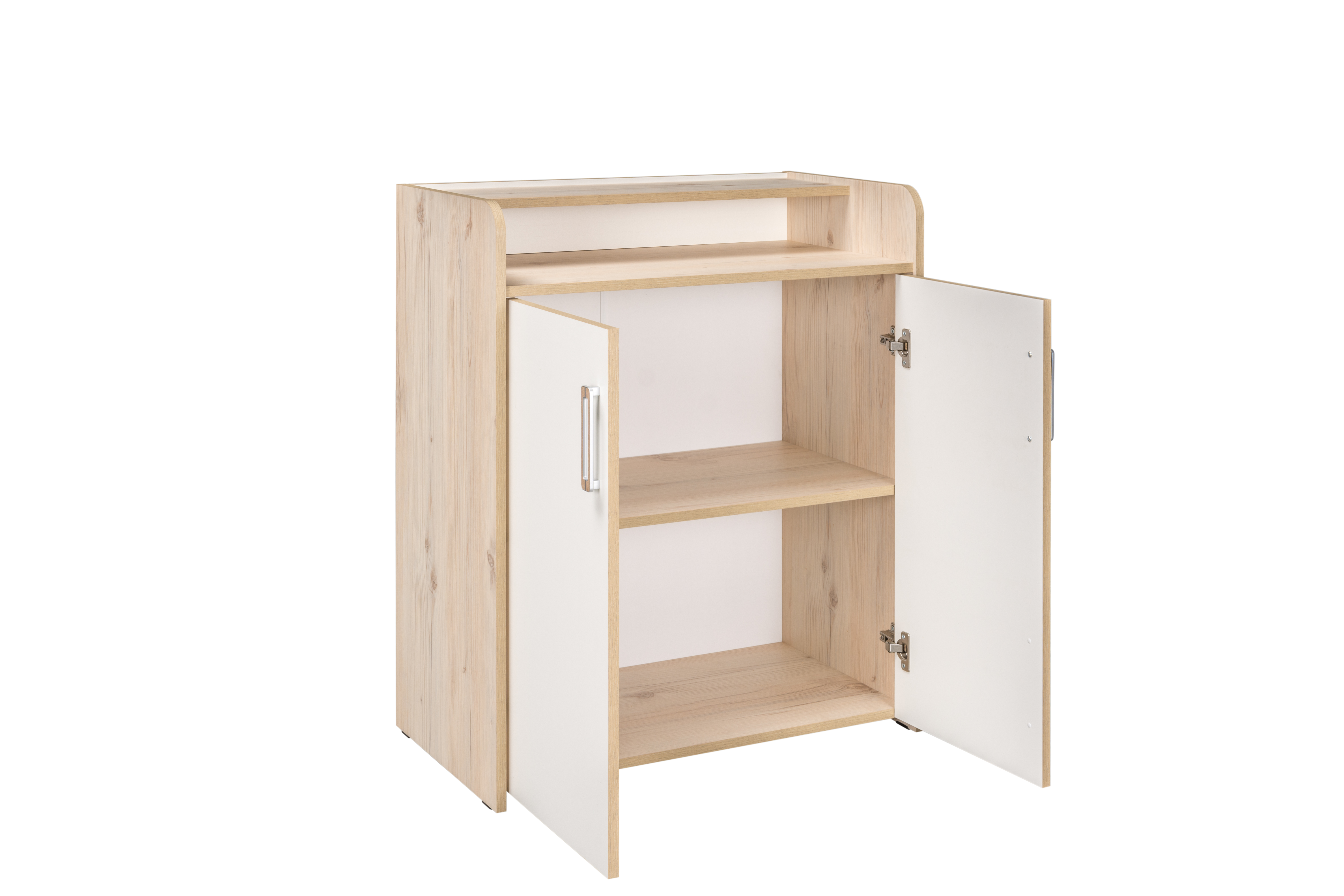 Вместительный комод с распашными дверками располагает щедрым местом для хранения ваших любимых вещей, где можно удобно расположить коробки с обувью или идеально сложенные стопки свитеров.