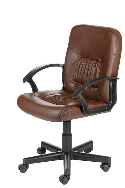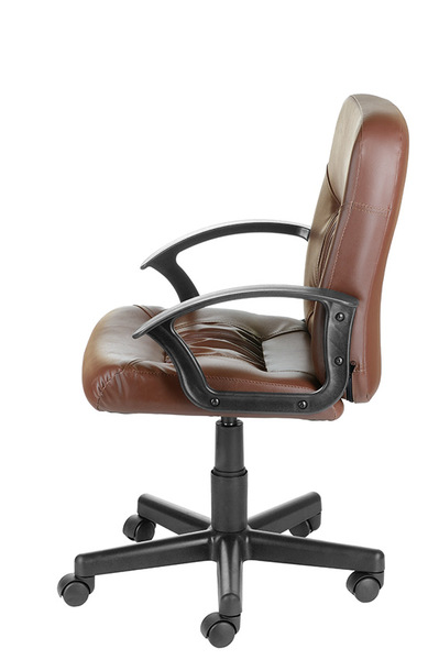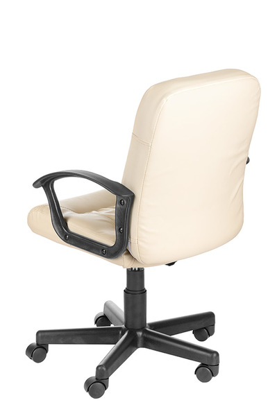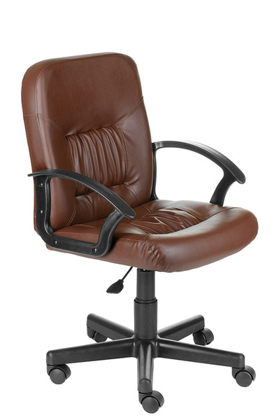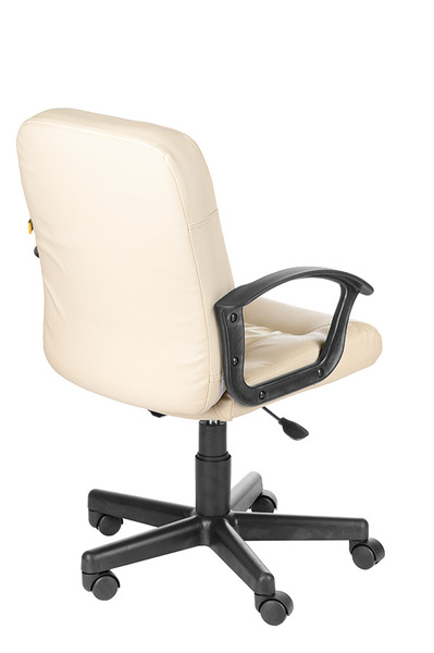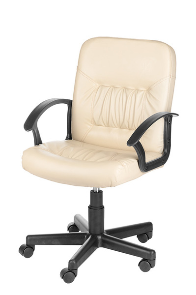 На фото кресло в кожзаме бежевого, коричневого и черного цвета, крестовина Мозес (пластик).