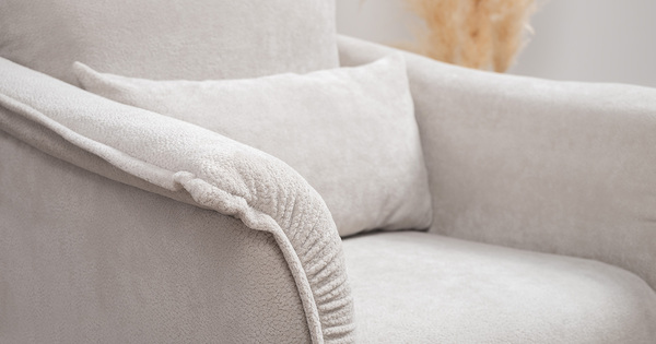 Кресло с приспинной подушкой трапецивидной формы на молнии, по трем сторонам которой проложена отделочная строчка на 1,2 см. По контуру боковин проложен декоративный кант на 1,2 см основной ткани. Кант проходит по центру передней части боковины, а по внутренней верхней части сборка.