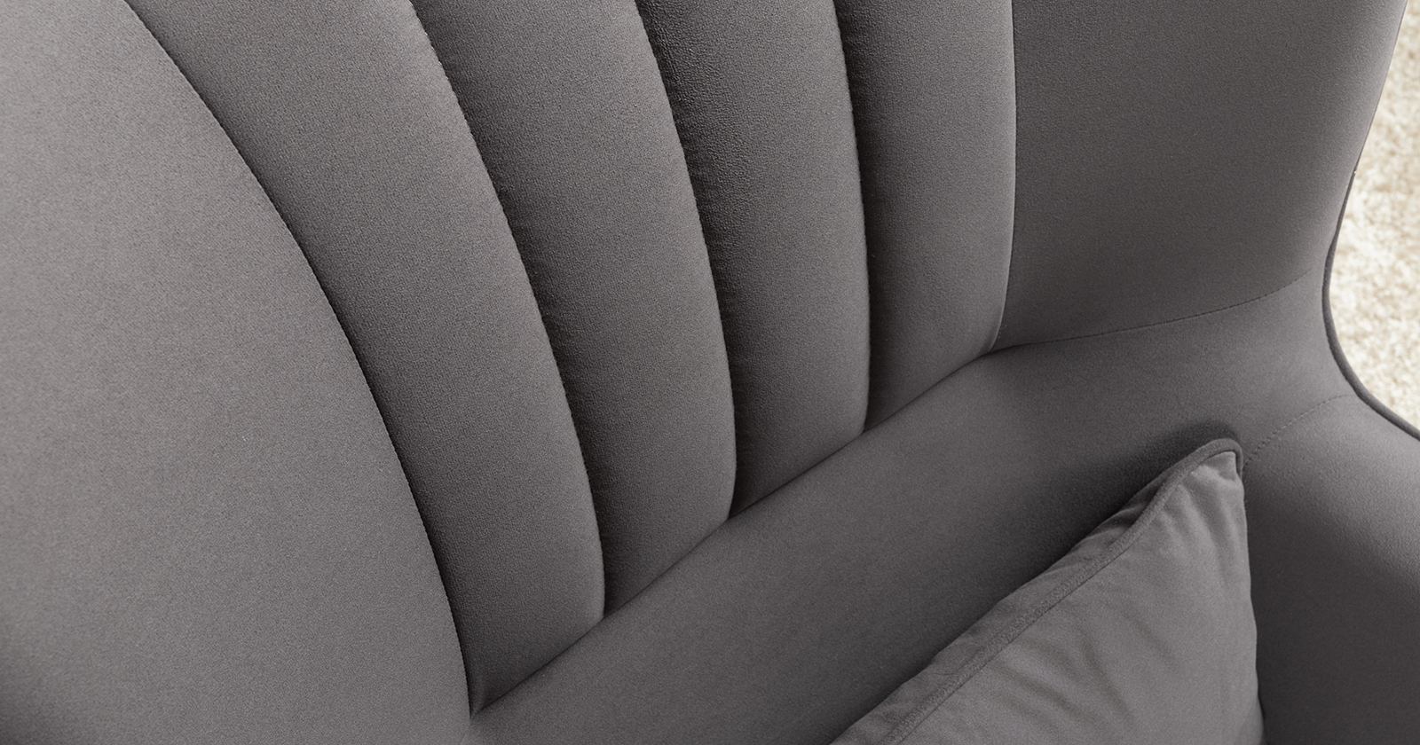 Вертикальная объемная стежка в средней части спинки; кант на спинке, подлокотниках и декоративной подушке