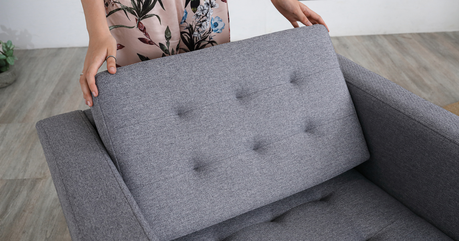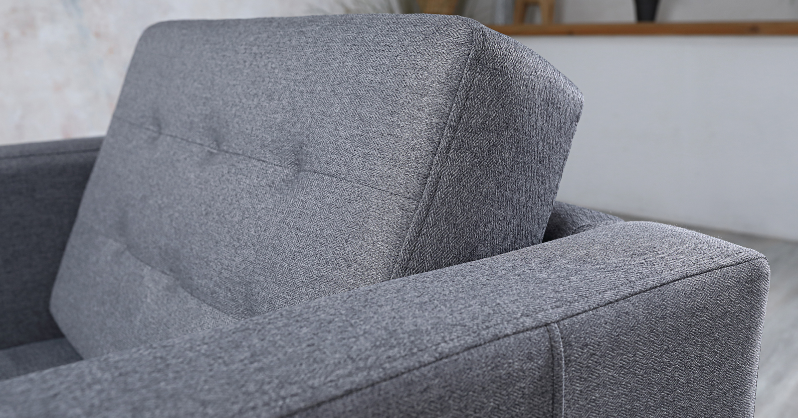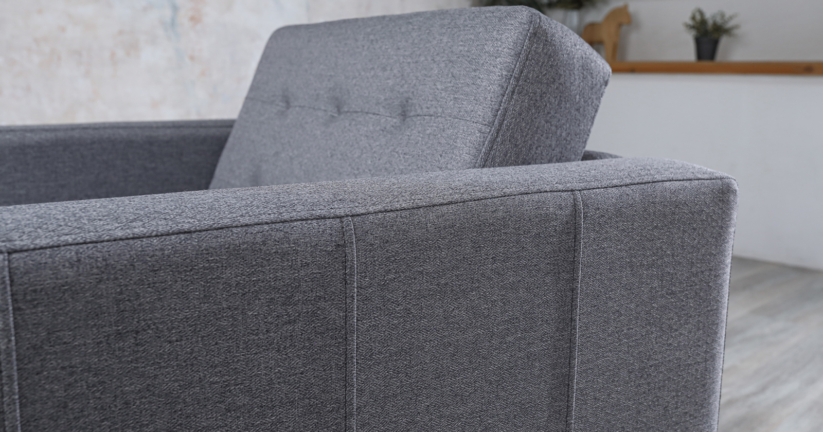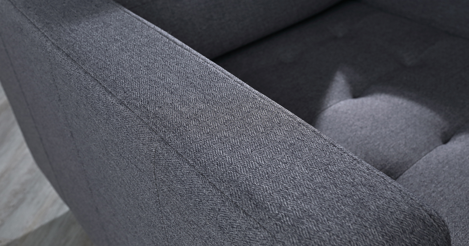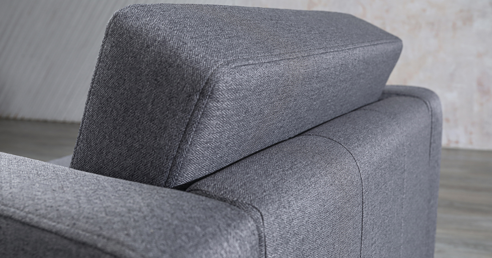 На подушке спинки втянуты 6 утяжек, вдоль швов втачивания торца проложена отделочная строчка.