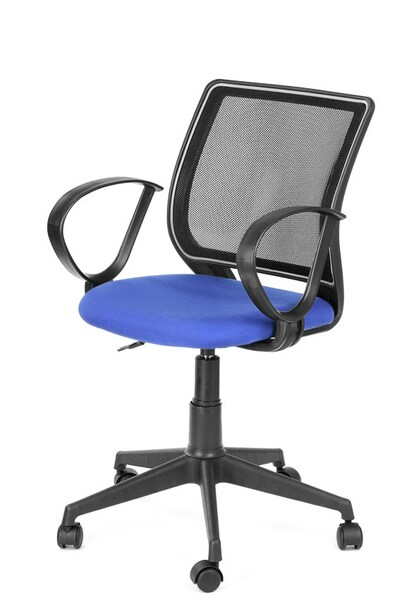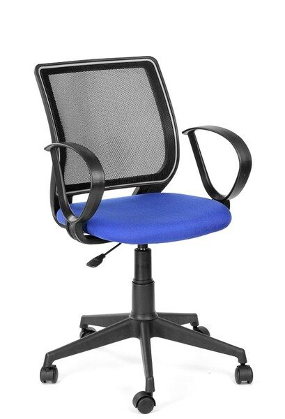 Кресло на колесах Эксперт Рондо сетка-спинка, синее сидение, подлокотник пластик, крестовина пластик, без качания