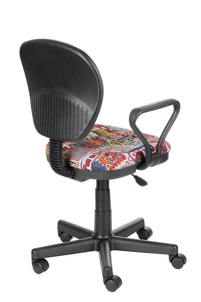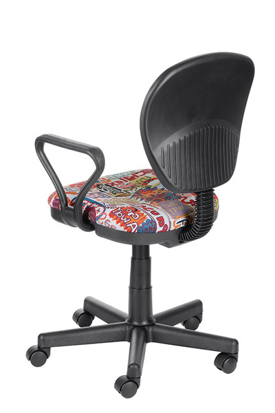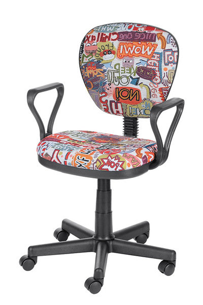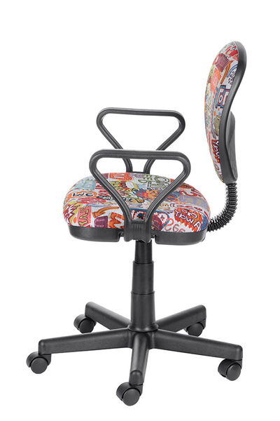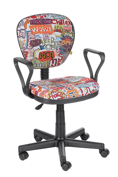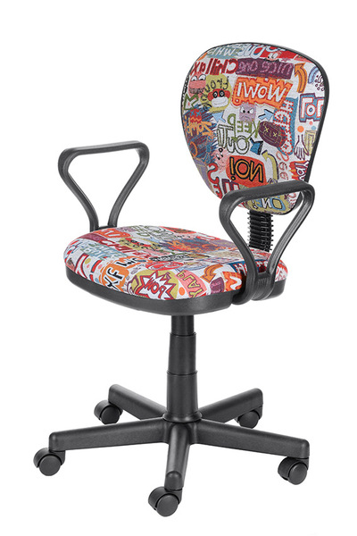 На фото кресло с подлокотником Самба в ткани T - 26 (граффити - на данную ткань временно заказы не принимаются см. раздел Возможные цвета) на пластиковой крестовине Мозес.
