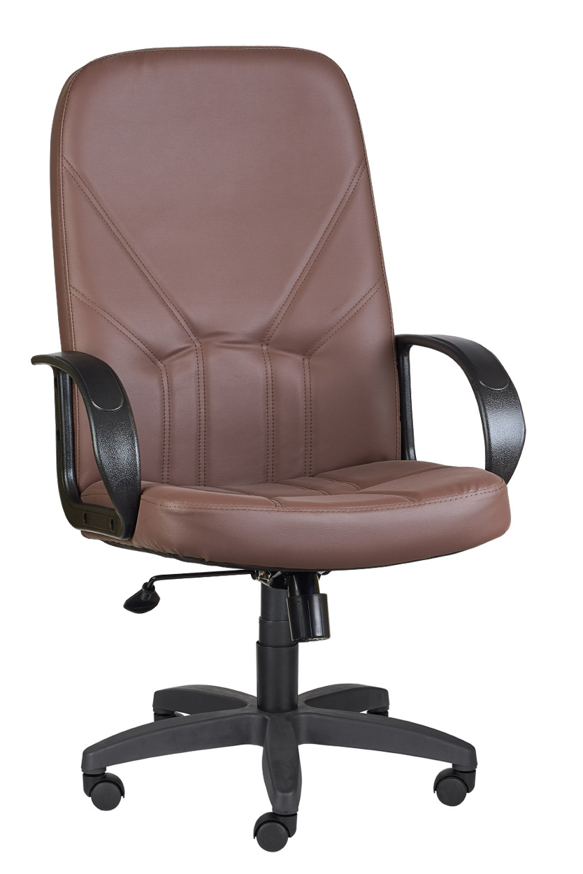 Кресло на колесах Менеджер ультра кожзам коричневый, крестовина пластик, подлокотники пластик, механизм качания