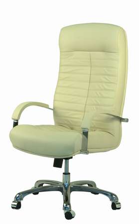 На фото светло-бежевая кожа с комплектацией крестовины и подлокотников в хроме.
