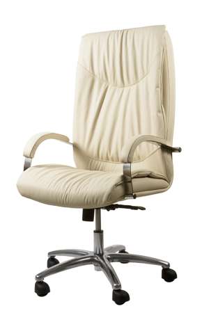 На фото изображен вариант кресла рукводителя Шеф с хромированными подлокотниками и хромированной крестовиной в светло-бежевой коже.