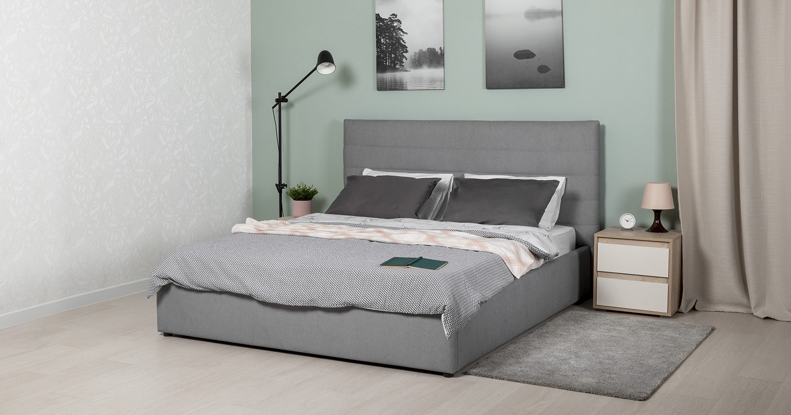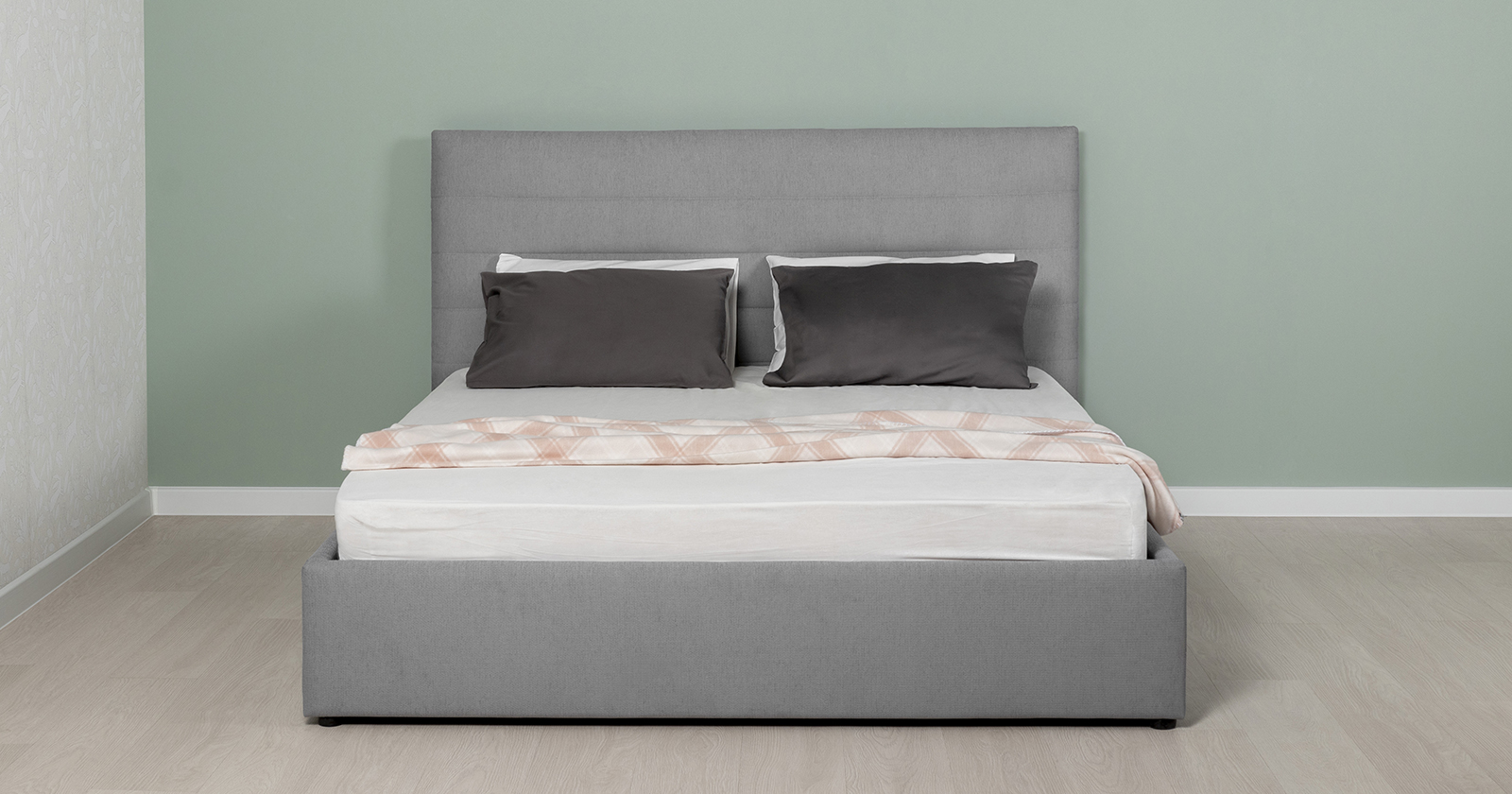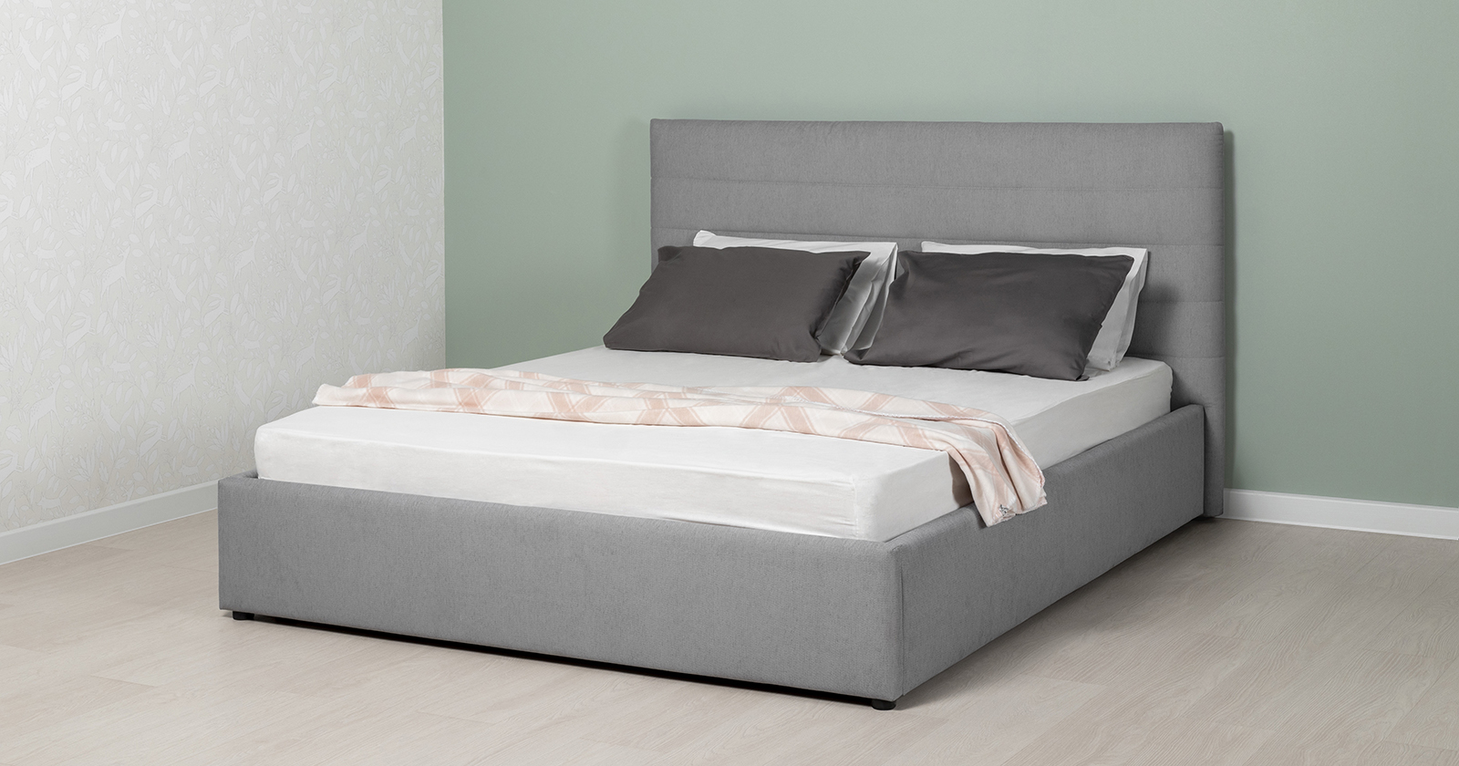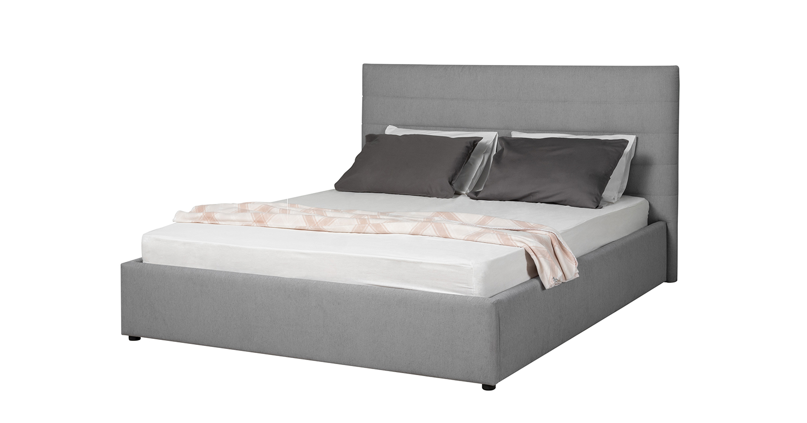 Модная новинка в семействе интерьерных кроватей. Форма мягкого объемного изголовья подчеркнута горизонтальной стежкой.