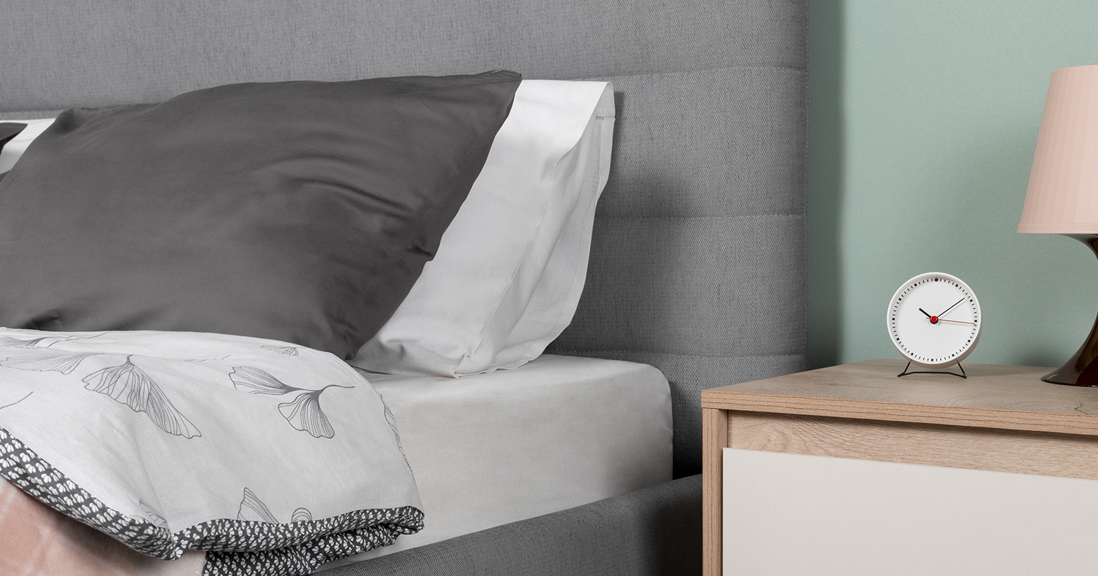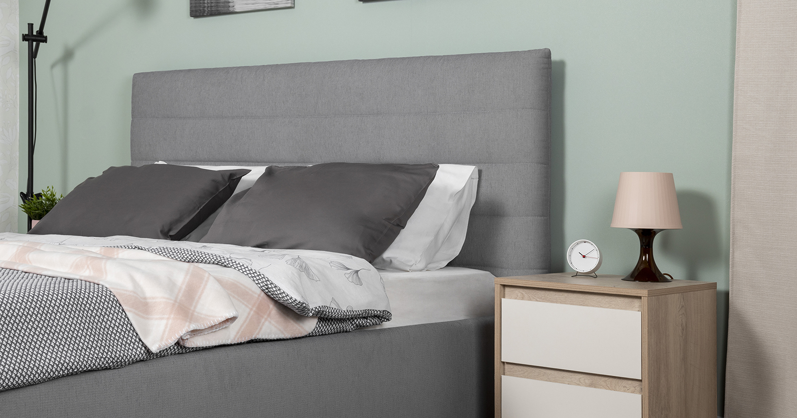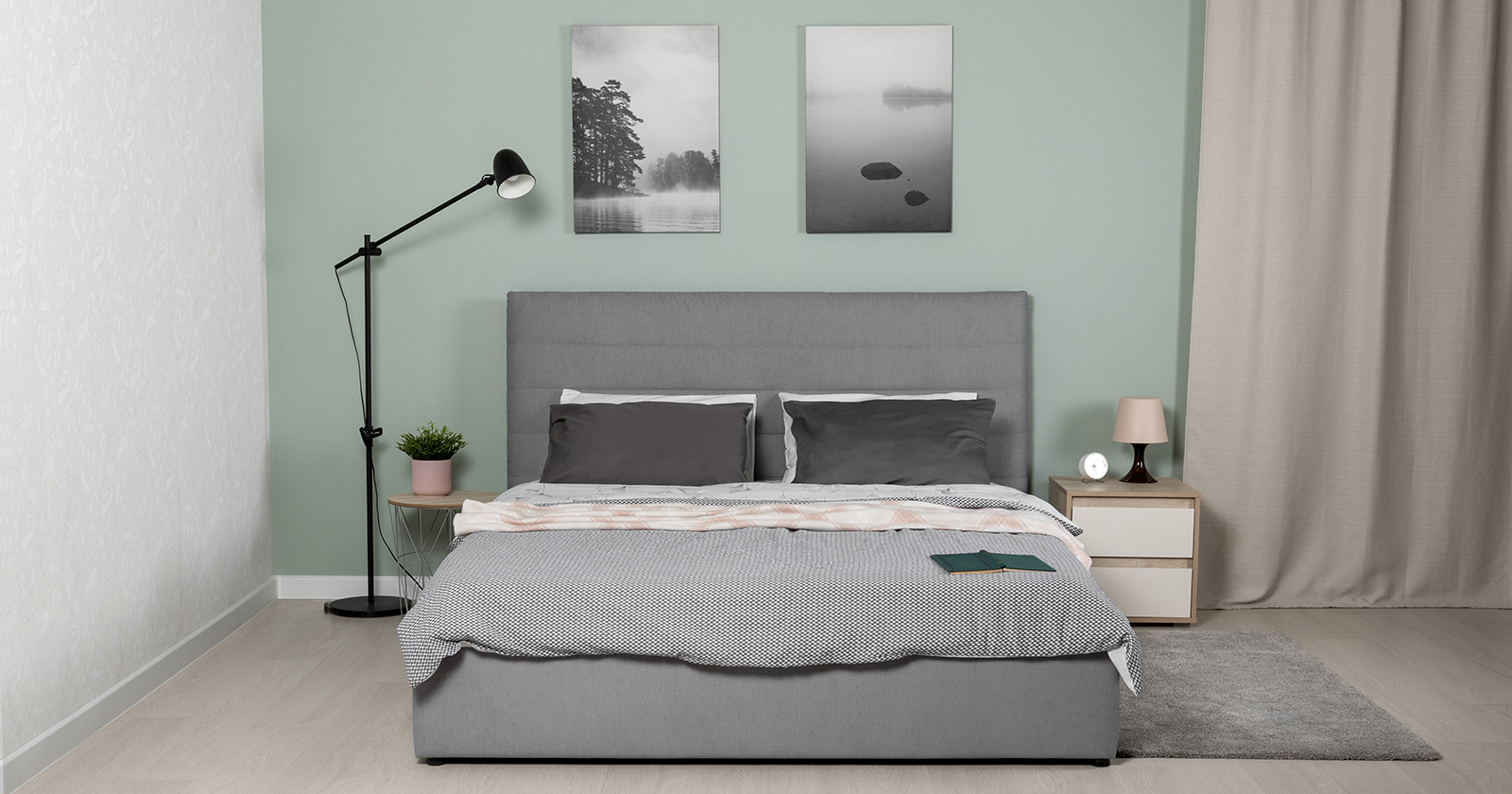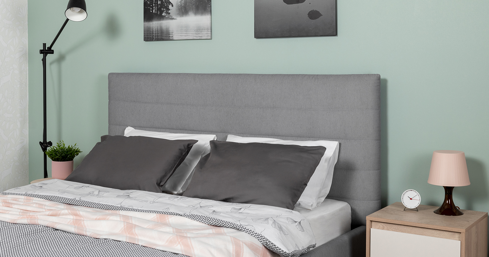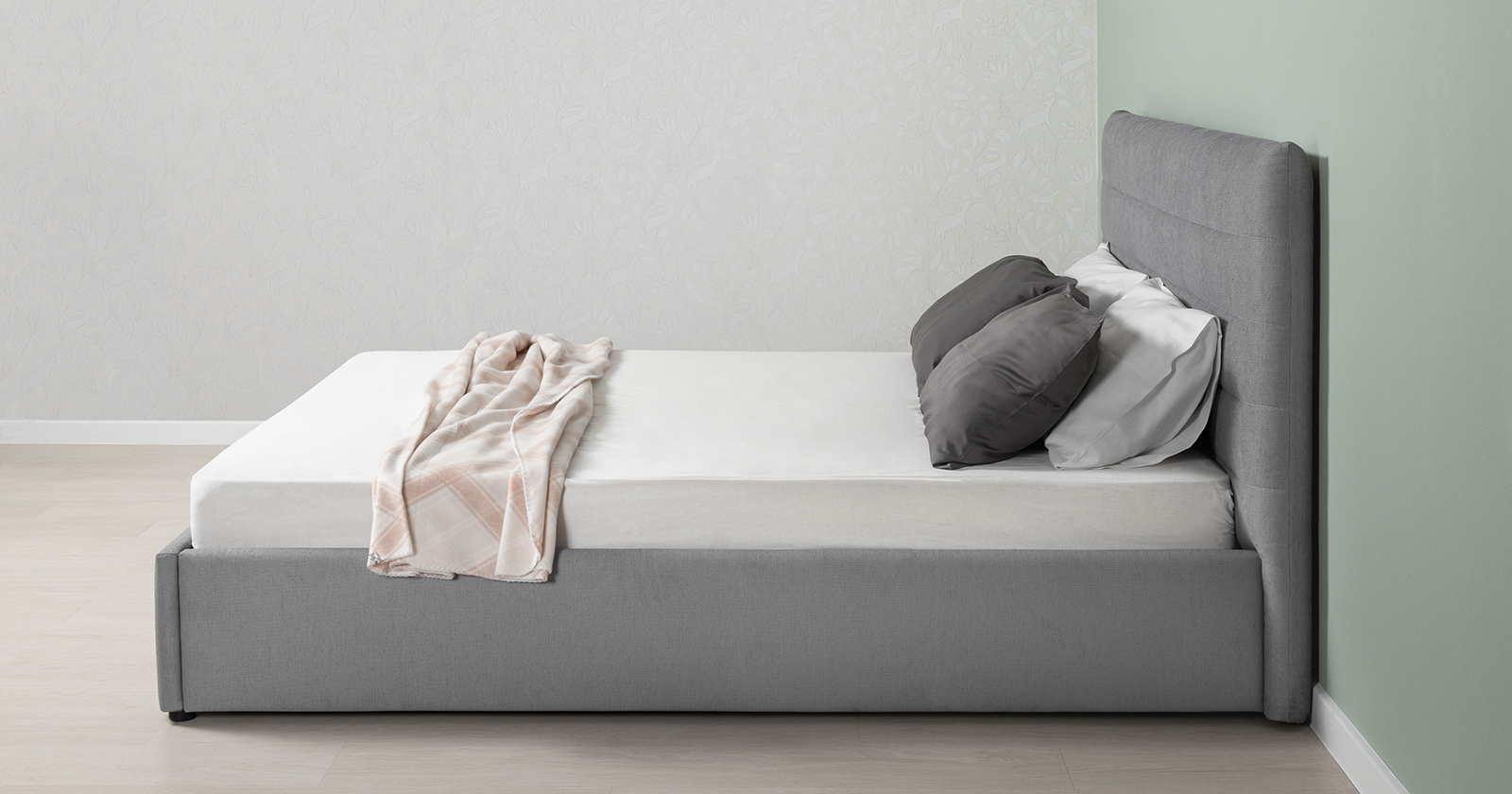 Модная новинка в семействе интерьерных кроватей. Форма мягкого объемного изголовья подчеркнута горизонтальной стежкой.