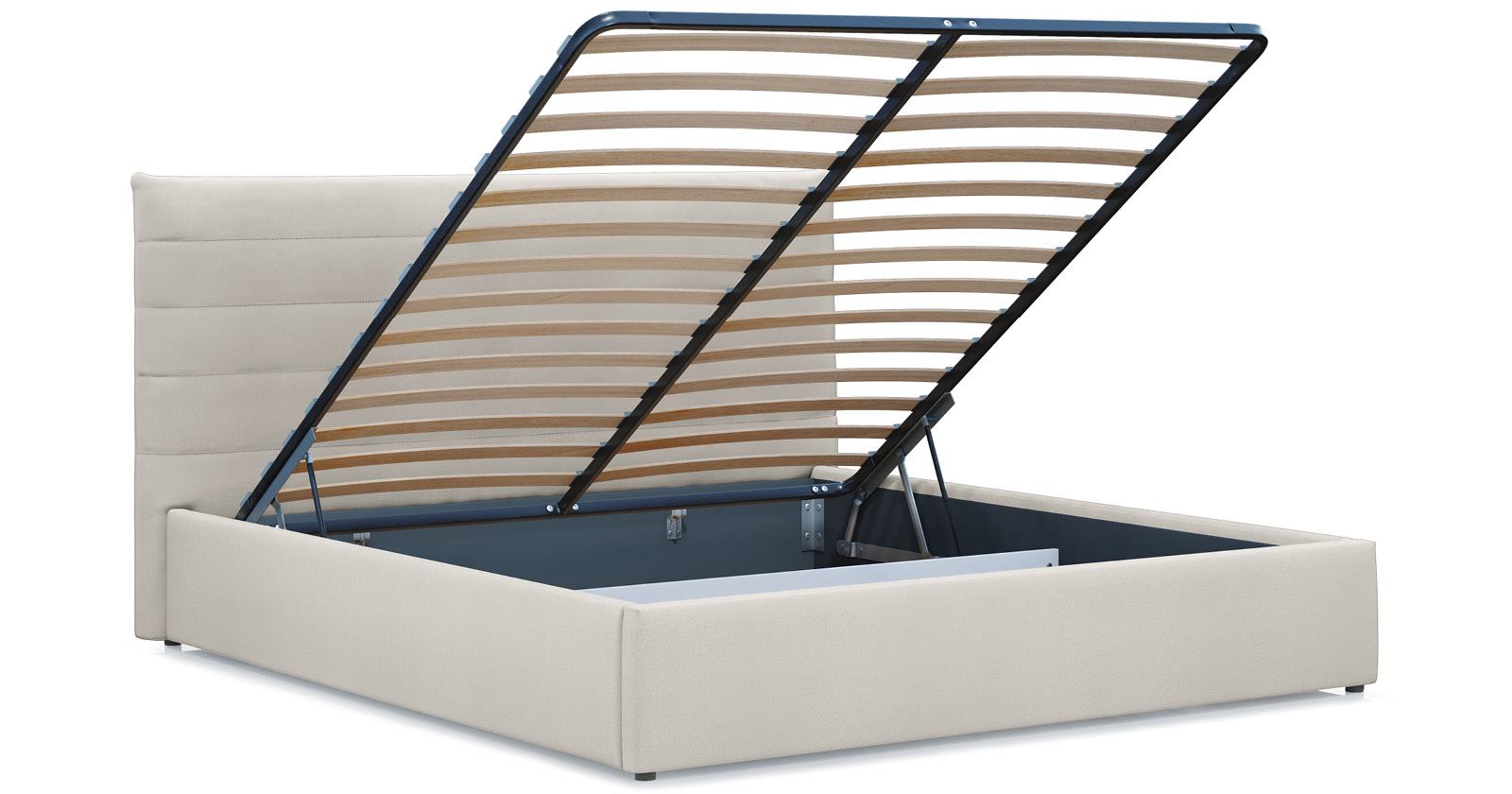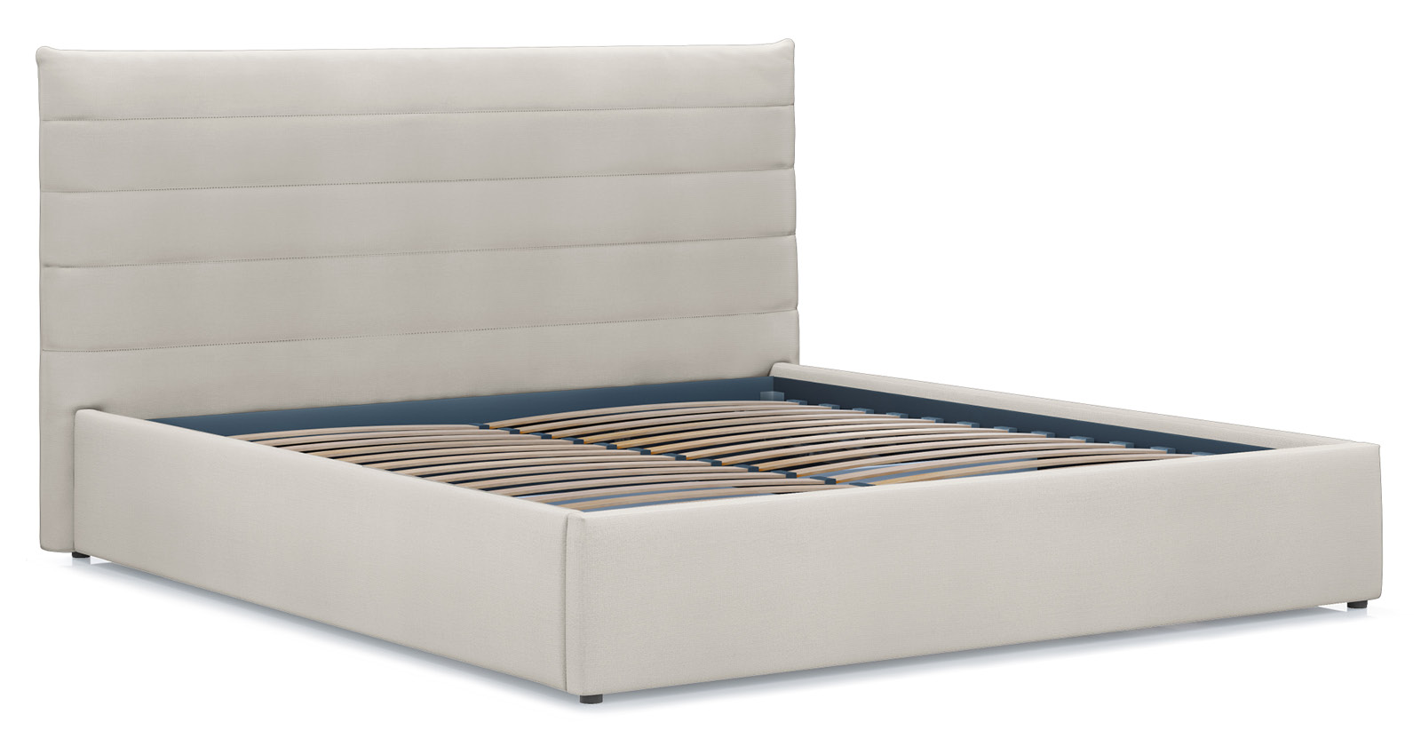 Модная новинка в семействе интерьерных кроватей. Форма мягкого объемного изголовья подчеркнута горизонтальной стежкой.