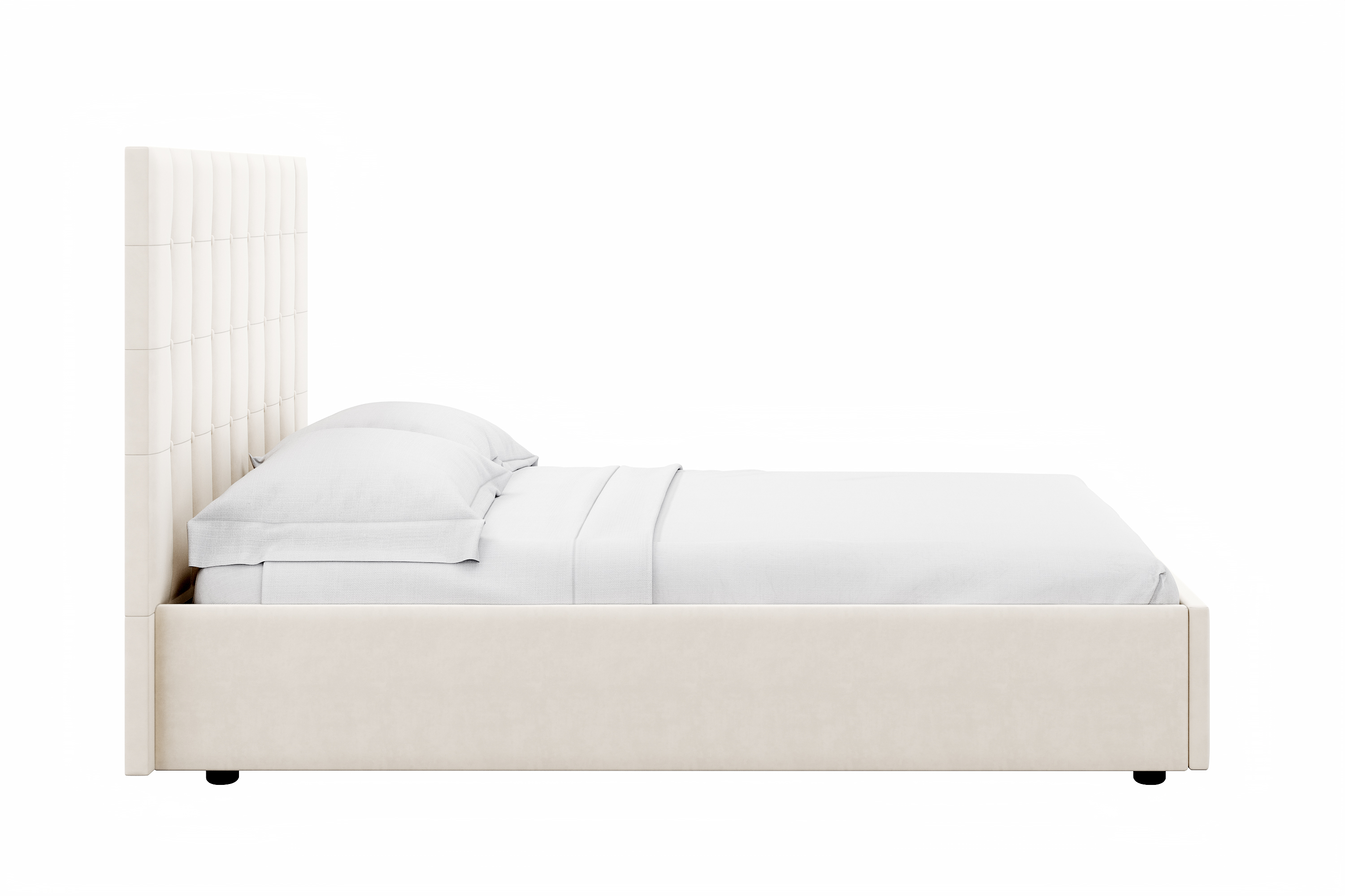 Если в спальне мало места, на помощь придет кровать с подъемным механизмом. ПМ легок в управлении, а вместительный короб внутри кровати подойдет для хранения подушек, белья и других вещей. Мягкая тканевая ручка облегчает процесс подъема основания. Купить кровать можно удобным способом: оформить заказ в интернет- магазине, положив товар в корзину. С кроватями можно приобрести комод и тумбу «Ester». Ткань обивки возможно выбрать в цвет с кроватью, из представленных вариантов велюра.
