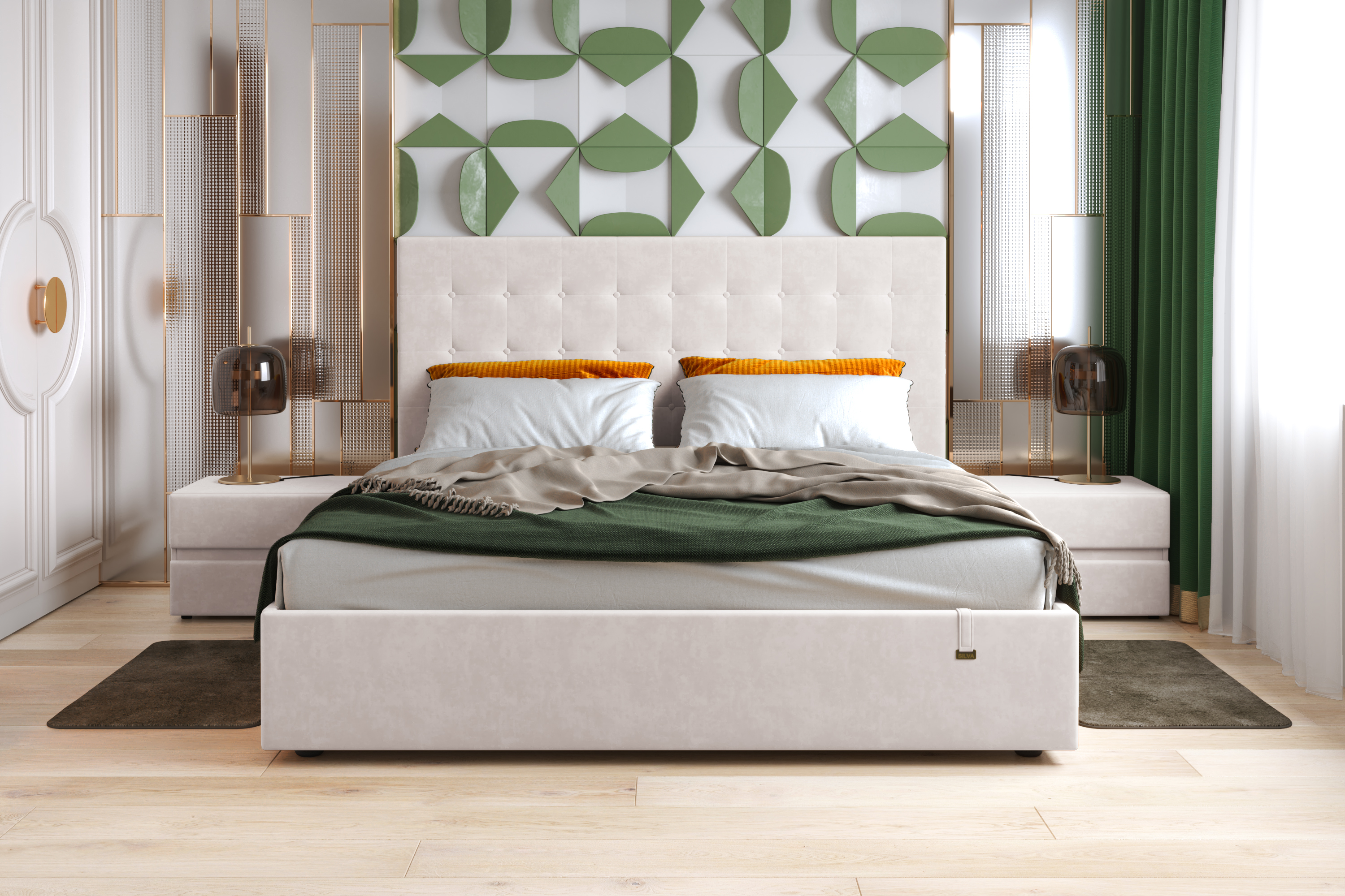 Кровать с мягкой спинкой «Сeline»– воплощение мечты ценителей изящного уюта в спальне. Кровати выполнены в нейтральных и ярких тканях велюр, что позволяет подобрать подходящий вариант почти под любой интерьер. Изголовье имеет прямоугольную форму, повторяя очертания кровати. Дизайн универсальный для разных интерьерных стилей, впишется в классику, неоклассику и минимализм. В качестве декора применяются декоративные пуговицы в цвет ткани.