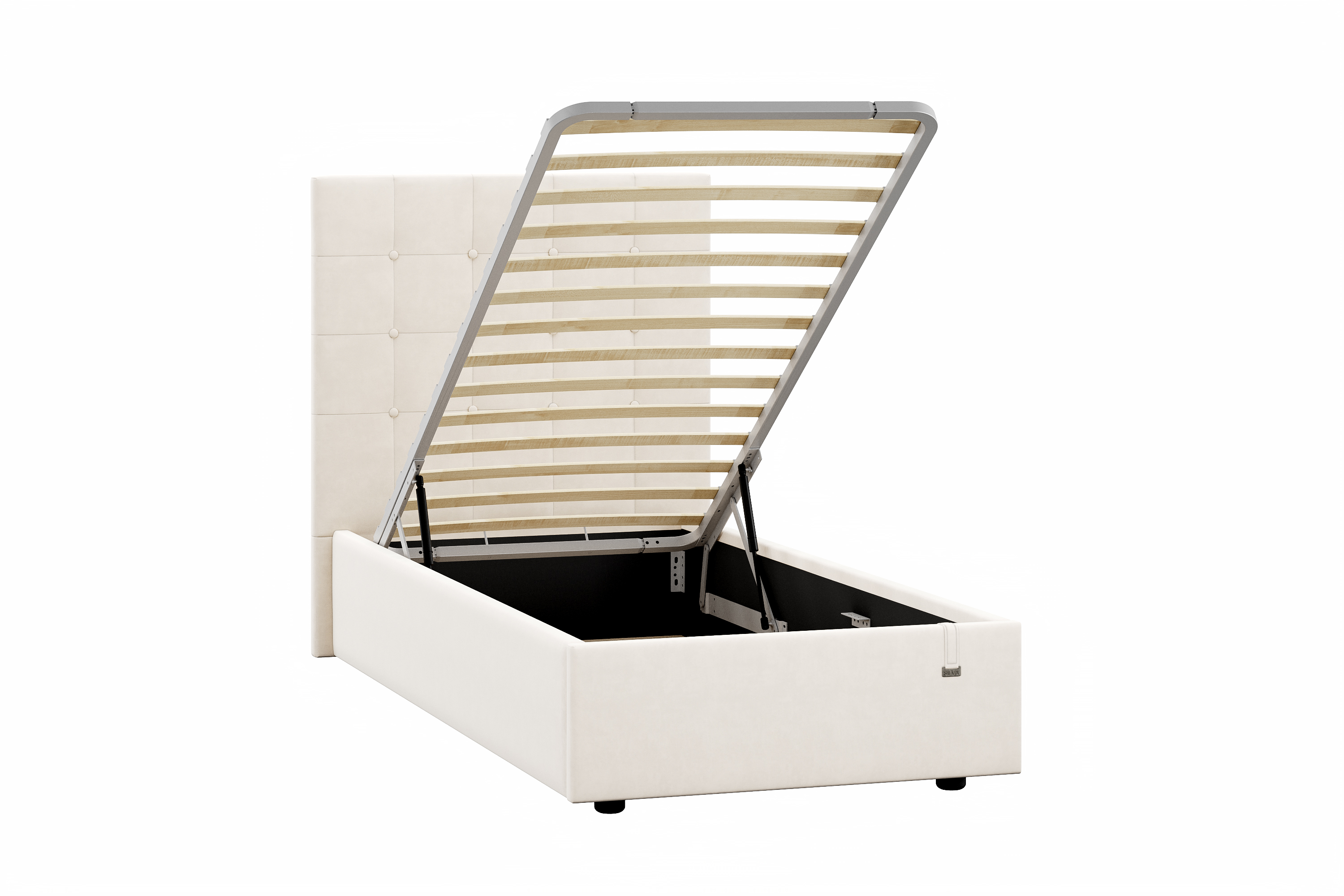 Основание под матрас оборудовано березовыми ламелями. Они обладают необходимой упругостью, которая позволяет прогибаться в зависимости от приложенной нагрузки. Реечное основание обеспечивает циркуляцию воздуха, что наилучшим образом сказывается на гигиенических свойствах матраса, ведь в нем не будет скапливаться влага, пыль и запахи.