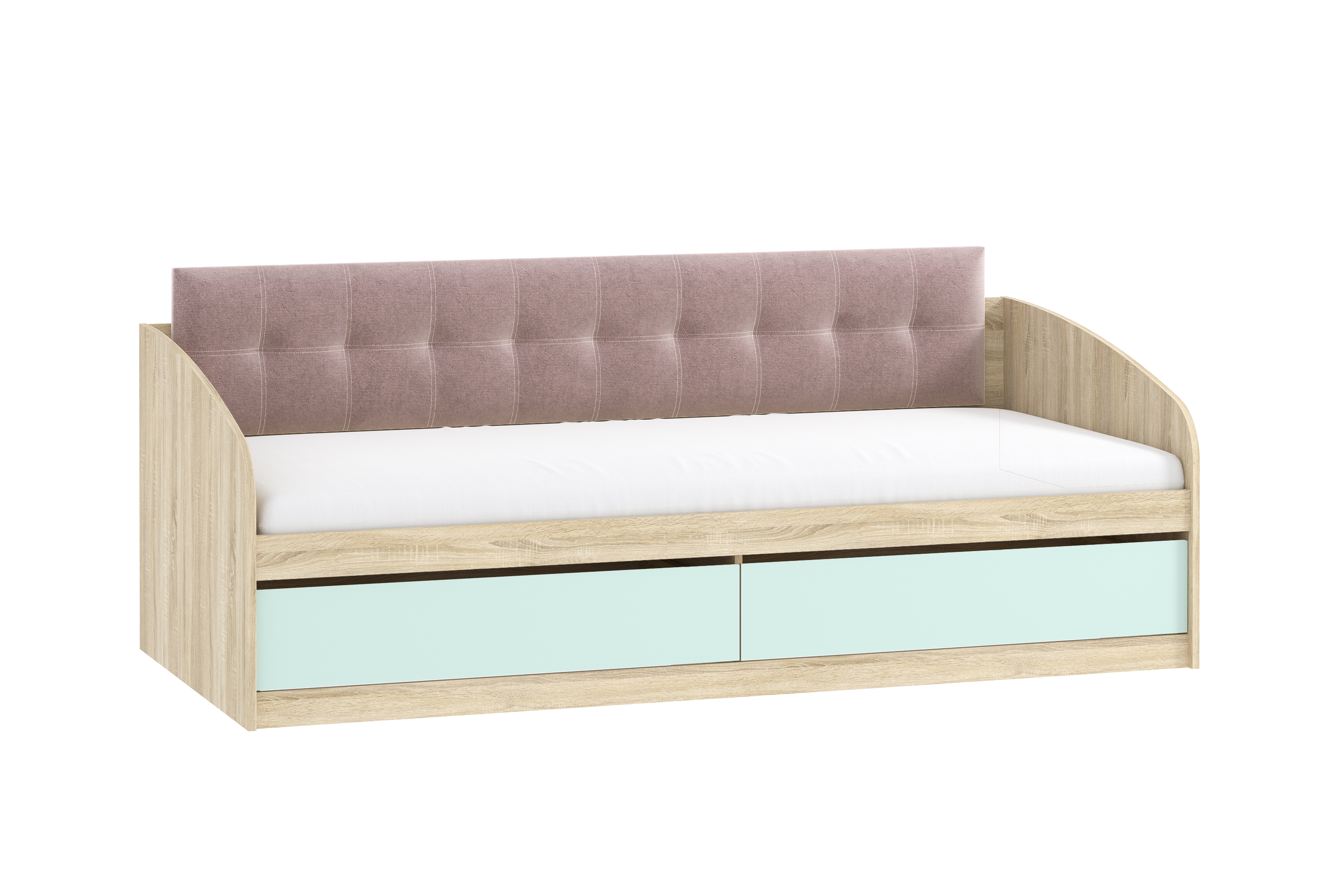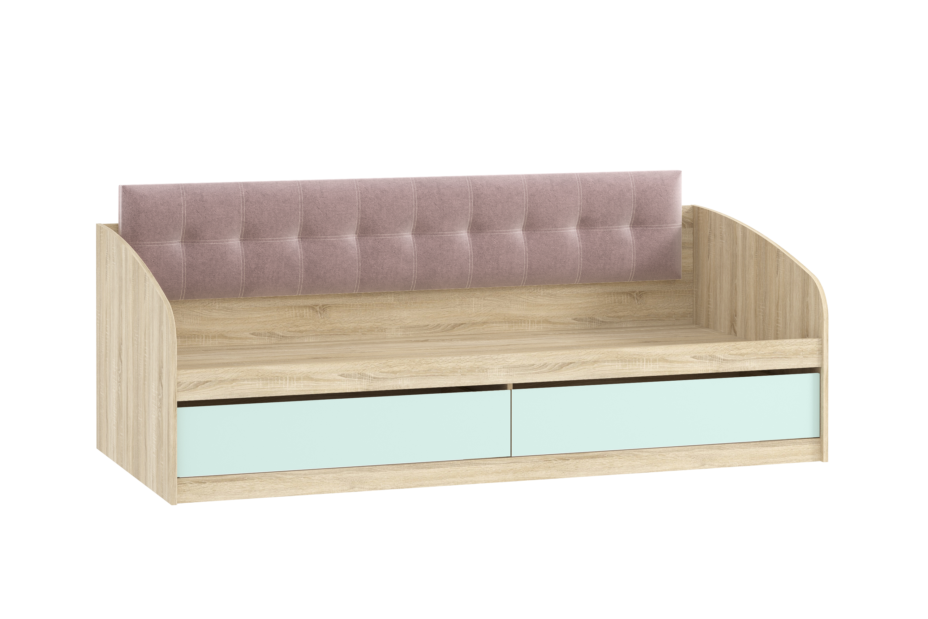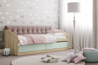 Кровать детская Акварель НМ 041.50 дуб сонома, кэнди с мягкой спинкой Дабл лекко ява велюр серо-розовый
