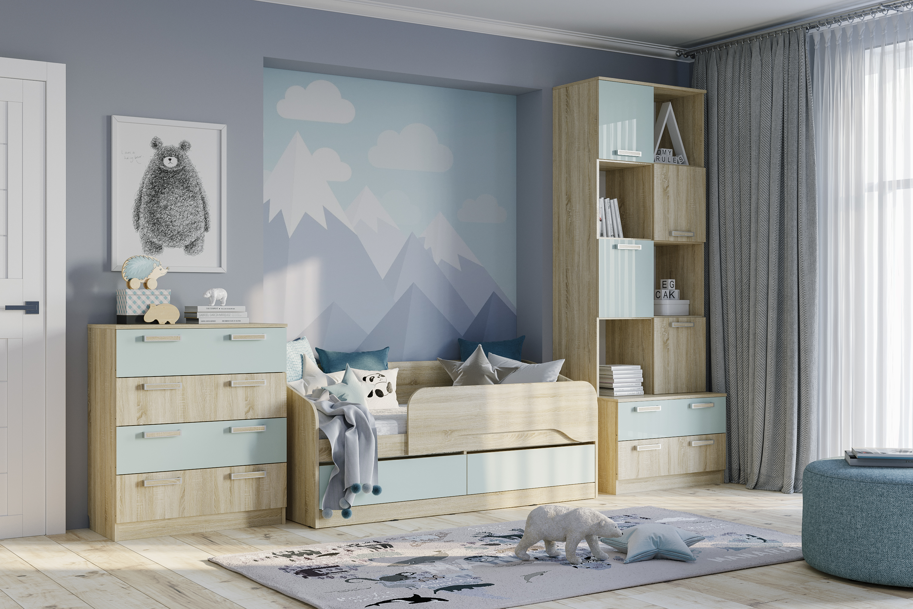 Одноместная кровать Акварель 041.54 с лаконичным дизайном идеально подходит для оформления уютного спального уголка в детской. Вместительные бельевые ящики удобны для хранения постельных принадлежностей. Боковая спинка предотвращает истирание настенного покрытия. Кровать полностью безопасна для ребенка: у модели нет острых углов и накладных ручек на фасадах ящиков. Ограничитель без острых углов обеспечит ребенку безопасный сон.