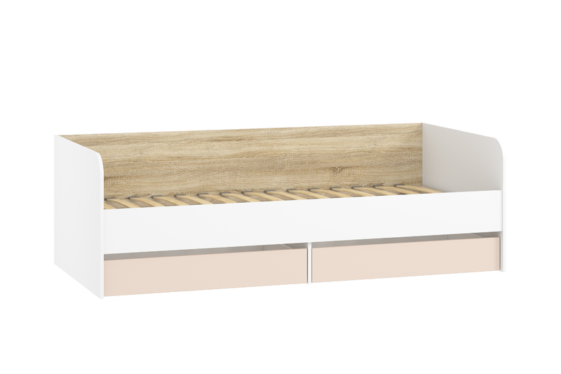 Кровать детская Банни НМ 041.38 с ортопедическим основанием, макарун, белый, дуб сонома