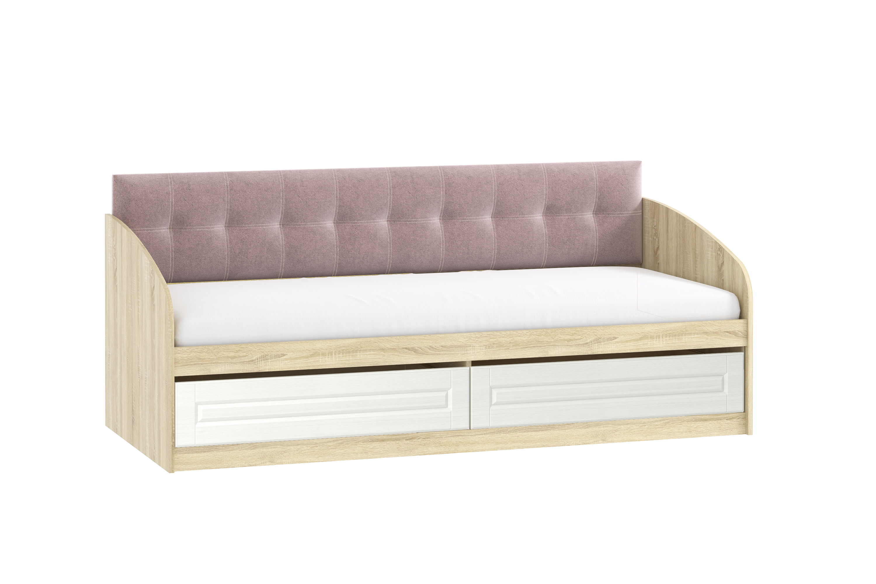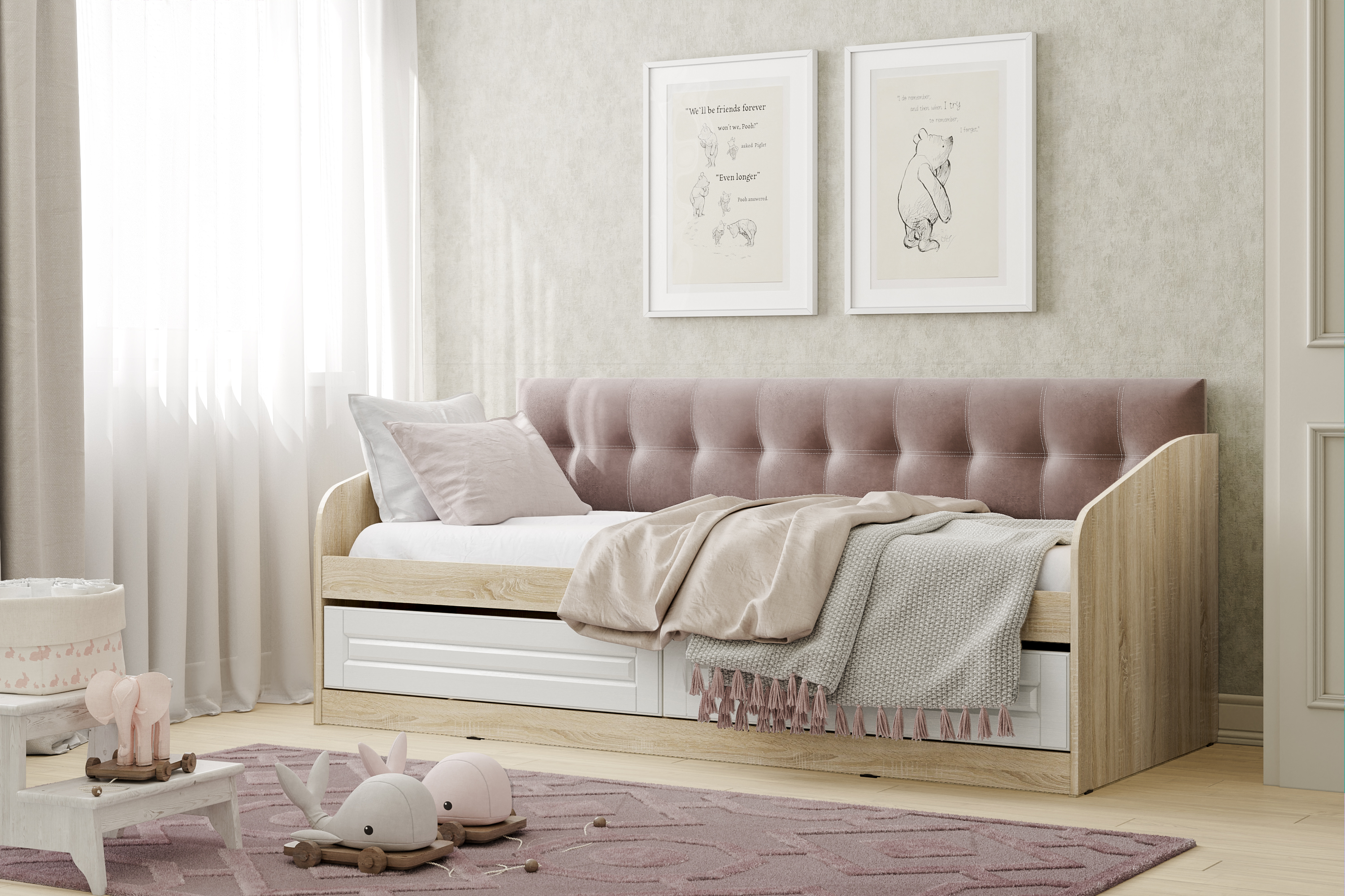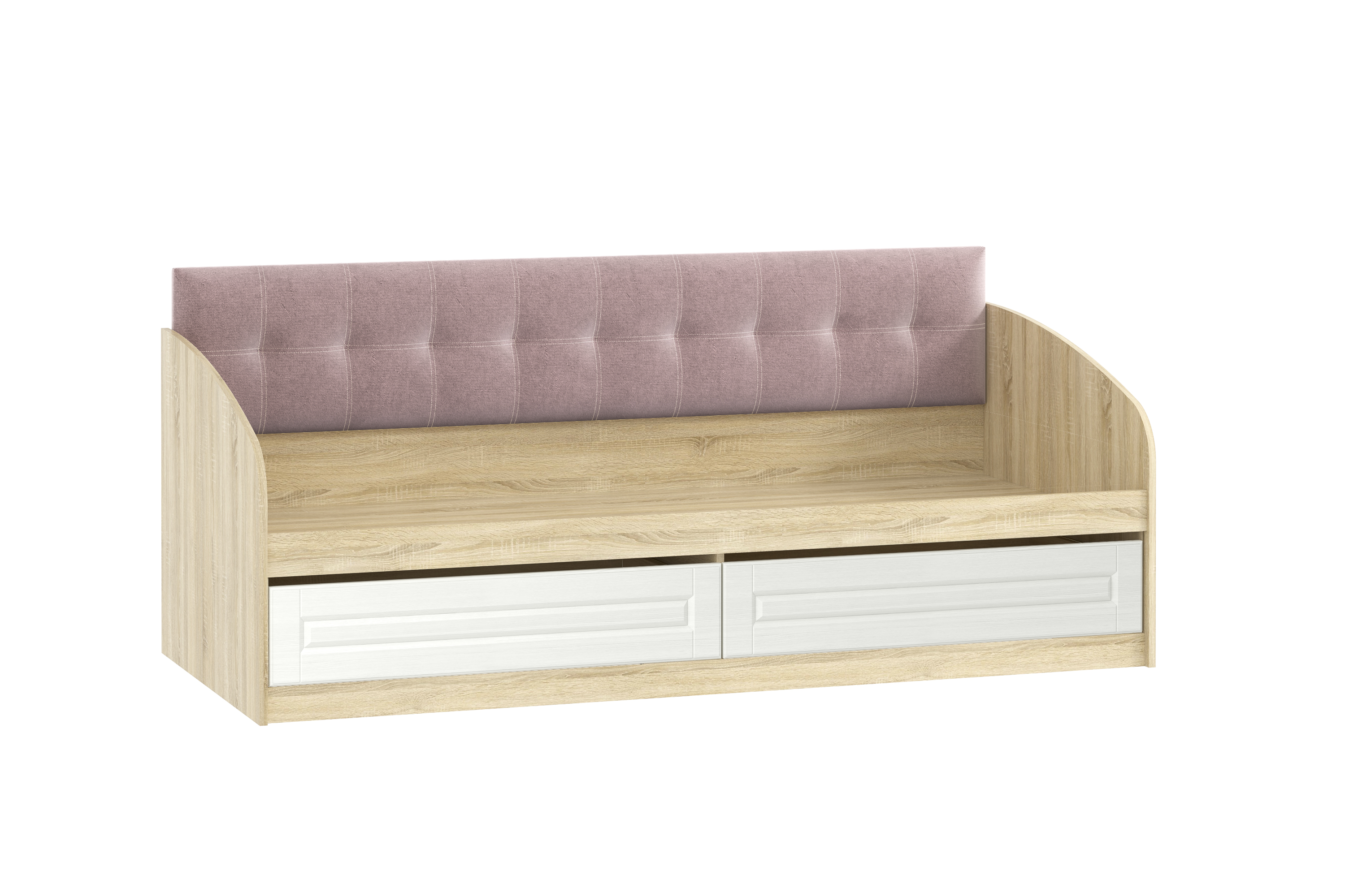 Кровать детская Оливия НМ 041.50-01 дуб сонома, белое дерево с мягкой спинкой Дабл лекко ява велюр серо-розовый