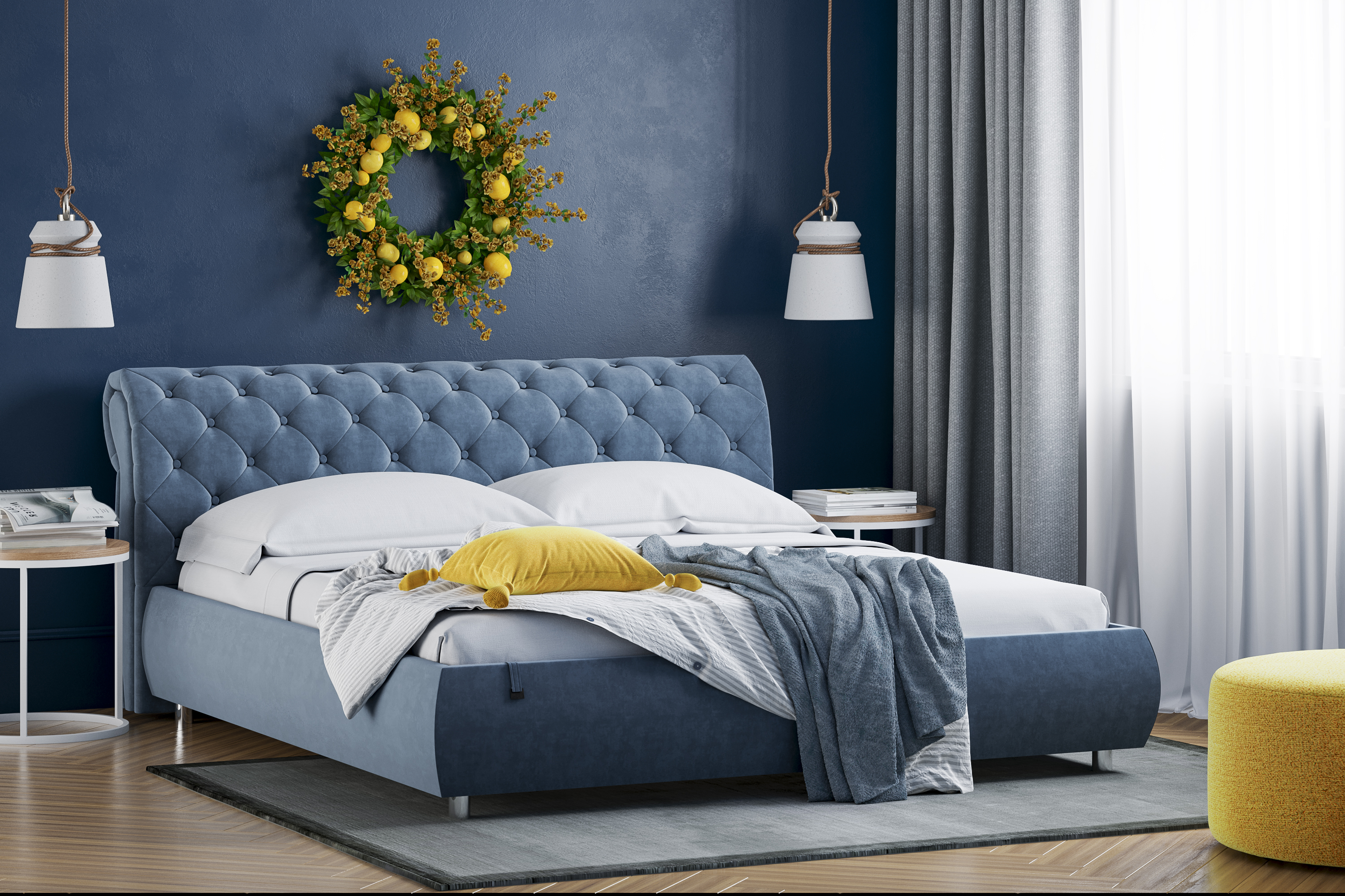 Купить кровать можно удобным способом: оформить заказ в интернет- магазине, положив товар в корзину. С кроватями можно приобрести комод и тумбу. Ткань обивки возможно выбрать в цвет с кроватью, из представленных вариантов велюра.