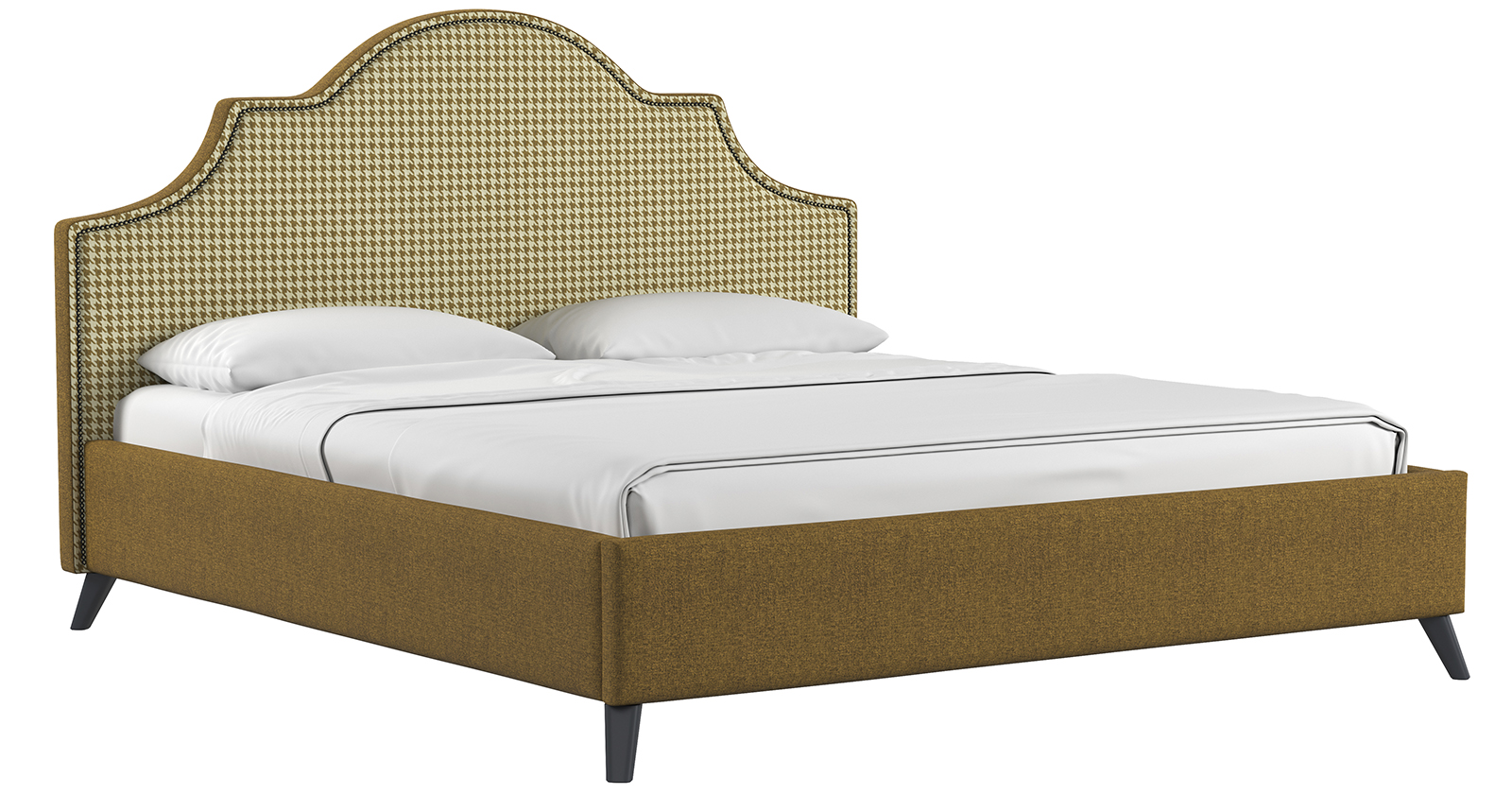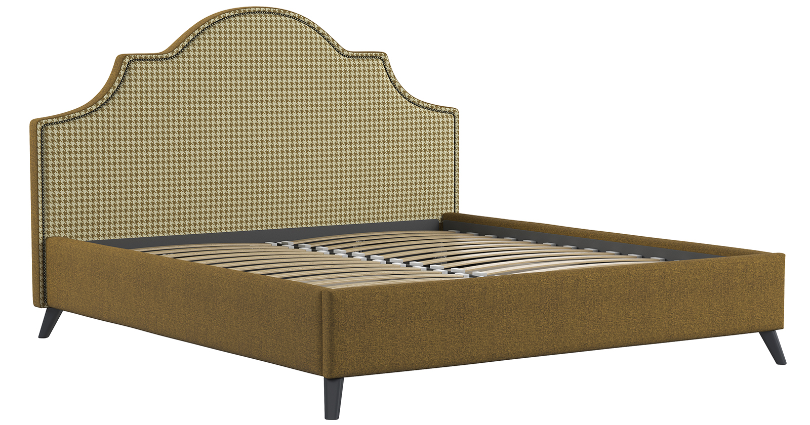 Фаина – кровать с ярким ультрамодным дизайном в неоклассическом стиле. Объемное фигурное изголовье декорировано мебельным молдингом-гвоздиками.