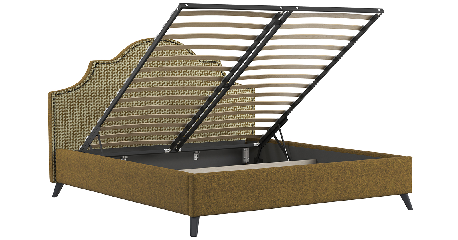 Кровать Фаина 180 рогожка горчичный с ортопедическим основанием и подъемным механизмом