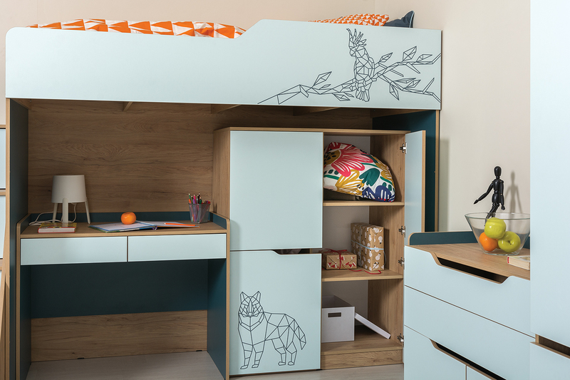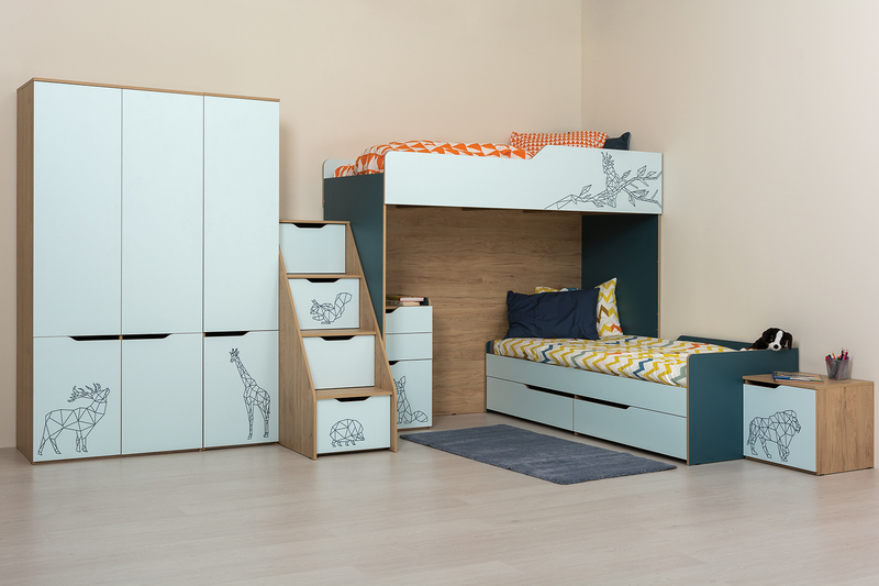 Кровать детская Гудвин 11.15 гикори рокфорд натуральный, бензин, мята