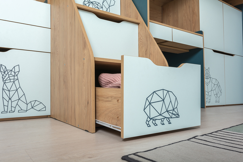 Кровать детская Индиго 11.03 с ортопедическим основанием и подсветкой, темно-серый, граффити, без подсветки