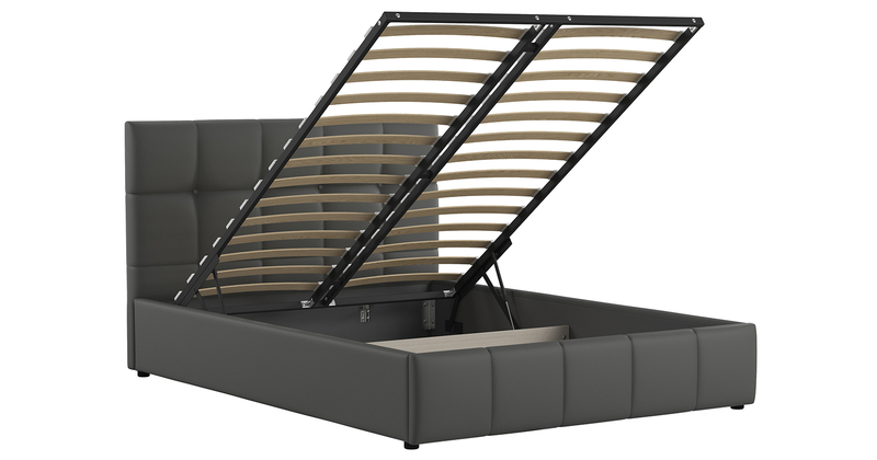 Кровать Хлоя 140 экокожа серый с ортопедическим основанием и подъемным механизмом