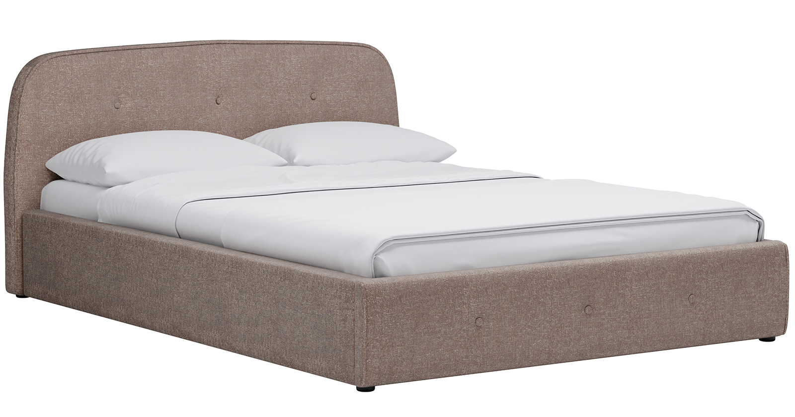Кровать Миа 160 рогожка бежево-коричневый, кант желтовато-коричневый с ортопедическим основанием и подъемным механизмом