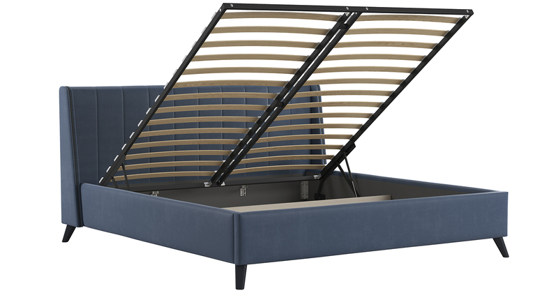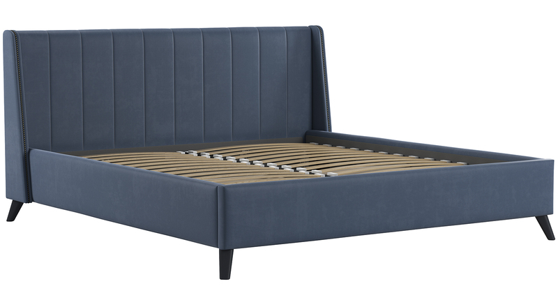Кровать Мелисса 180 велюр серо-синий с ортопедическим основанием и подъемным механизмом