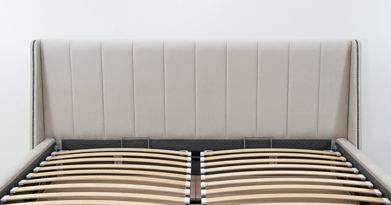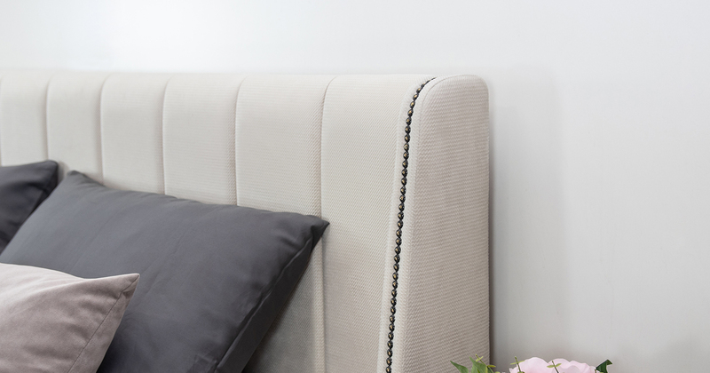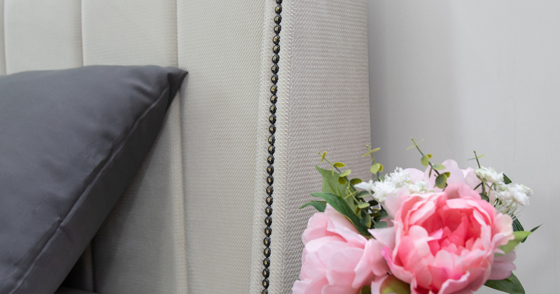 Изголовье с боковыми накладками, декорированными мебельным молдингом-гвоздиками