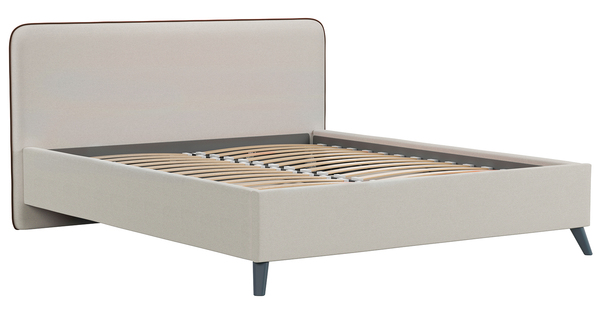 Кровать Миа 160 рогожка светло-бежевый, кант желтовато-коричневый с ортопедическим основанием и подъемным механизмом