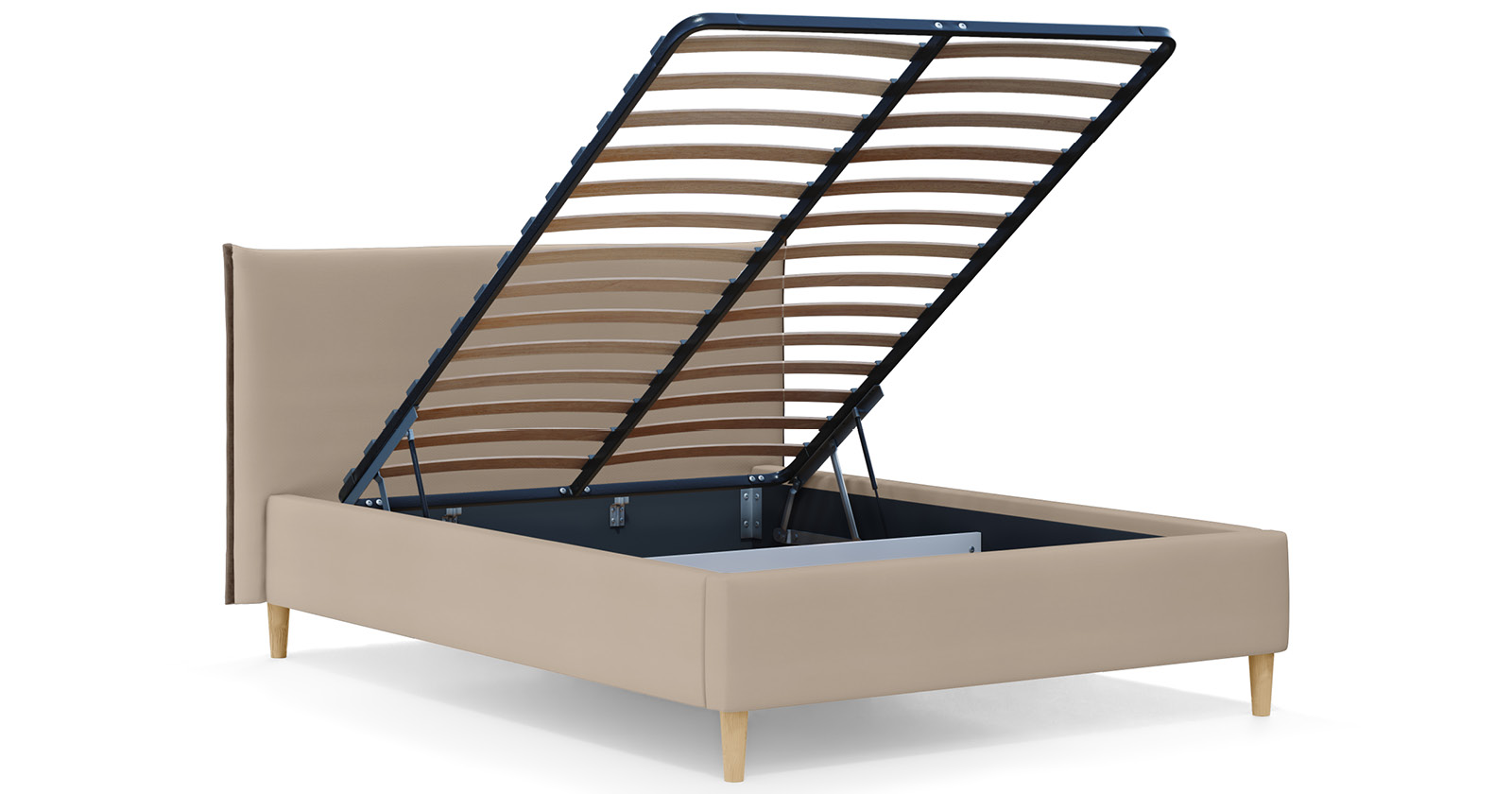 Кровать Миа 160 рогожка светло-бежевый, кант желтовато-коричневый с ортопедическим основанием и подъемным механизмом