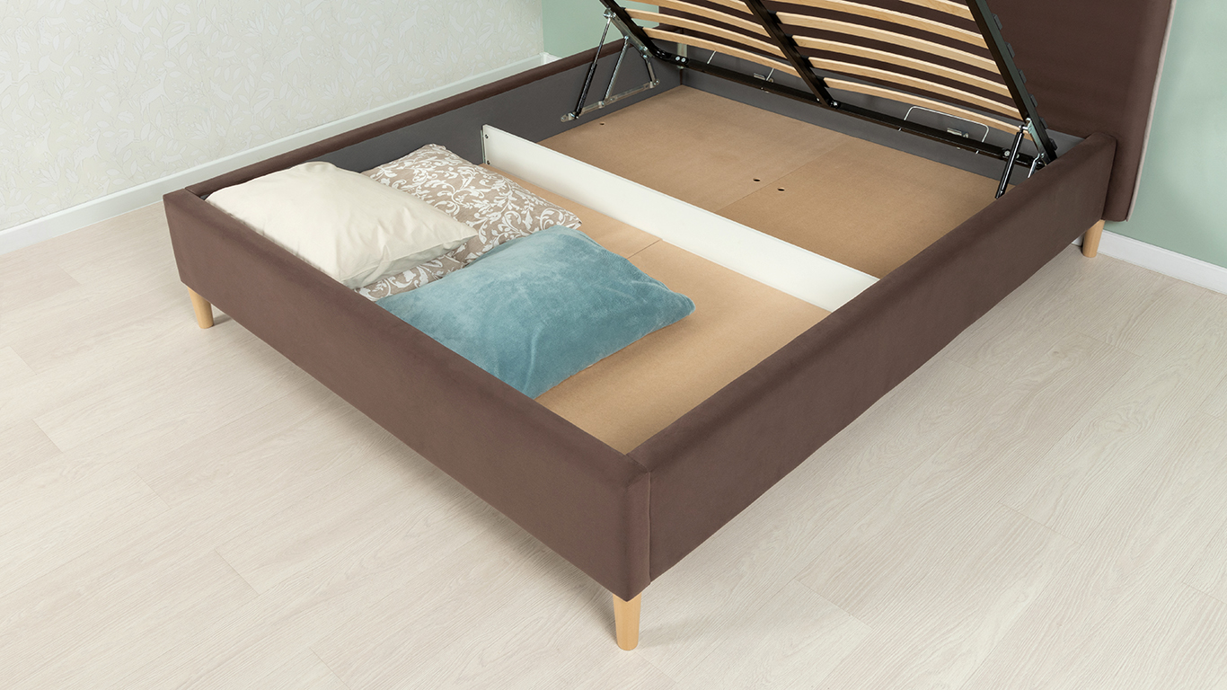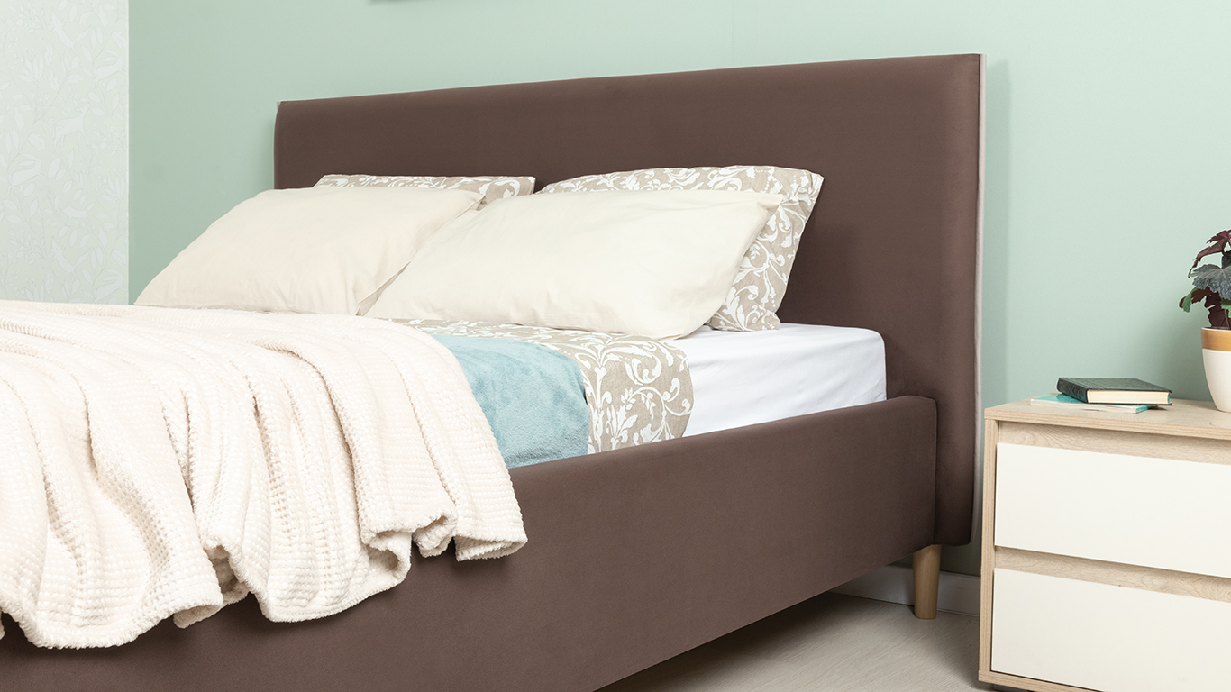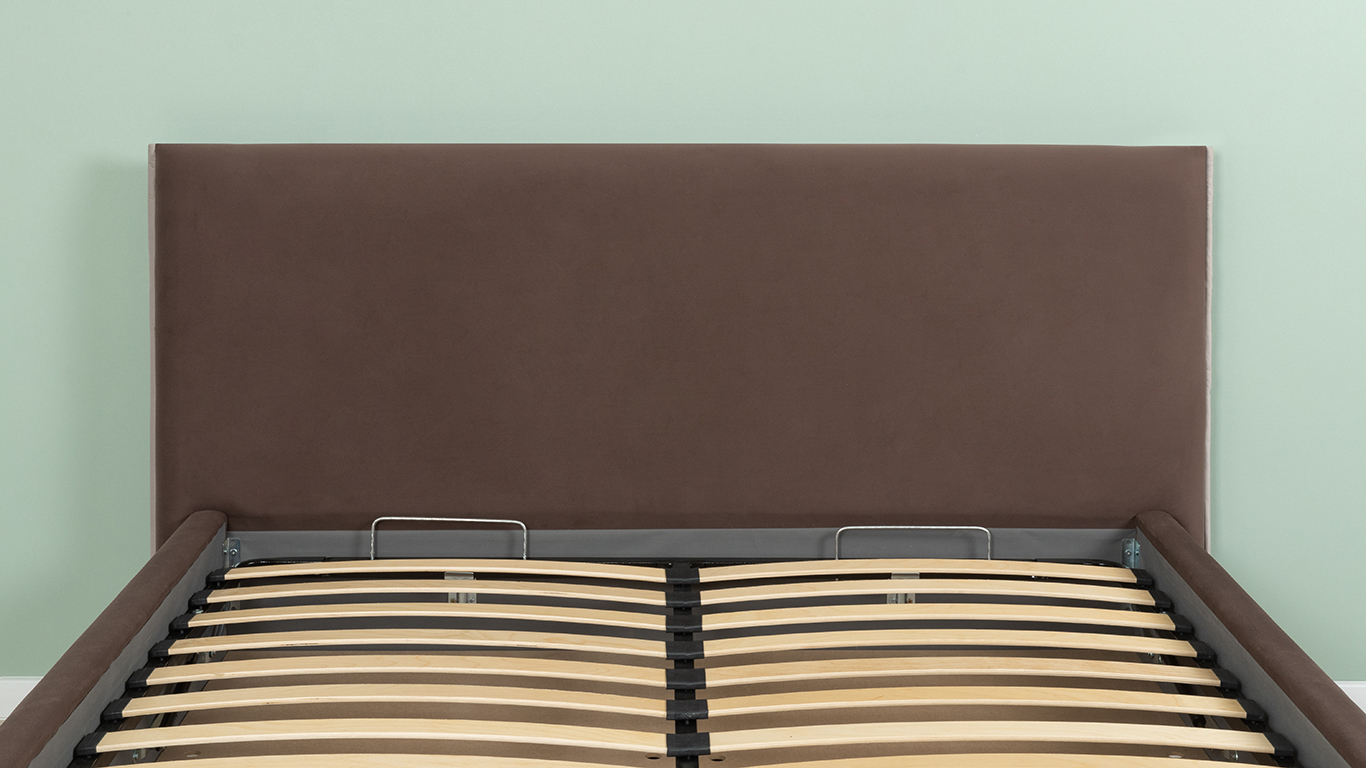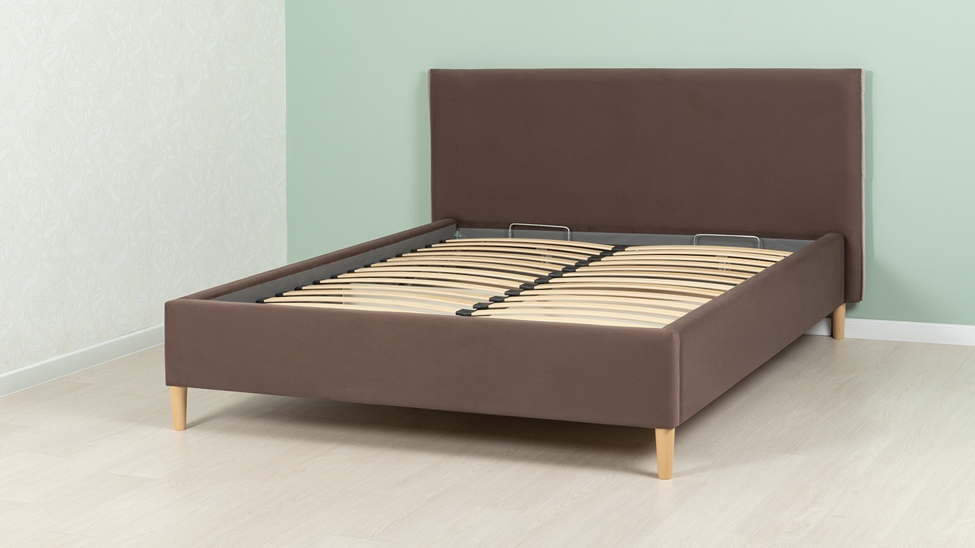 Кровать Микаса 160 велюр шоколадный, светло-серый с ортопедическим основанием и подъемным механизмом