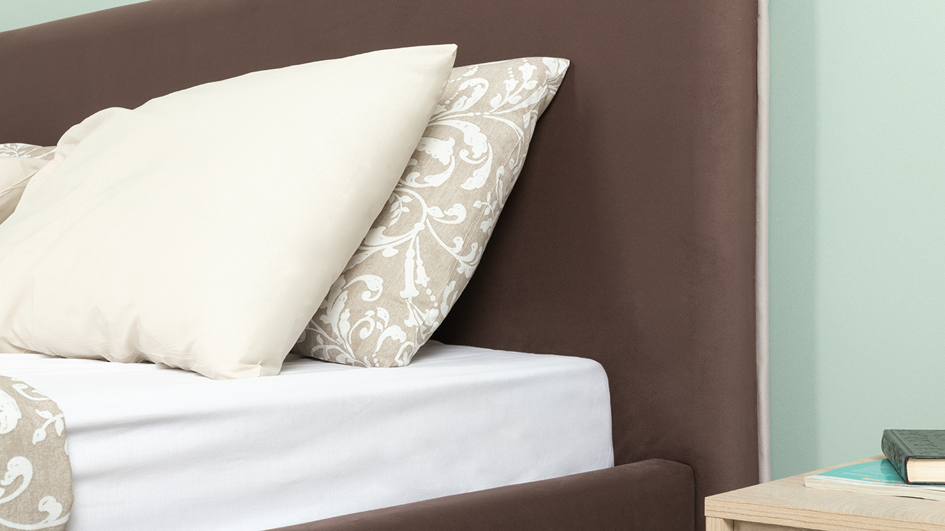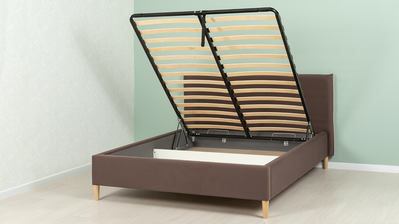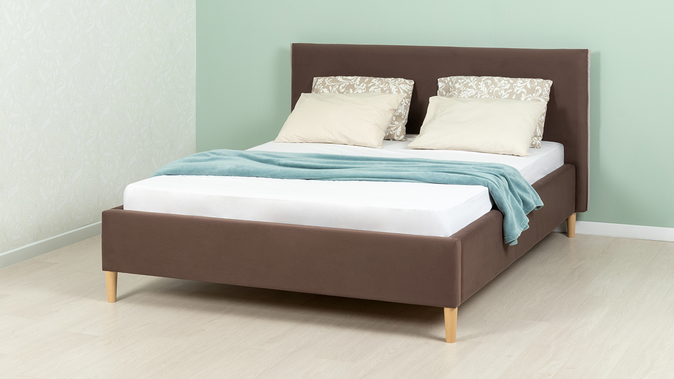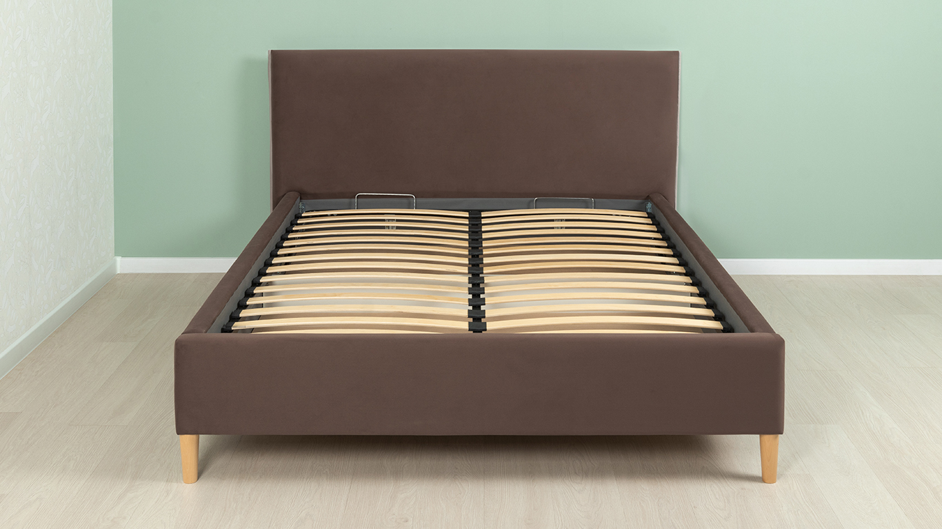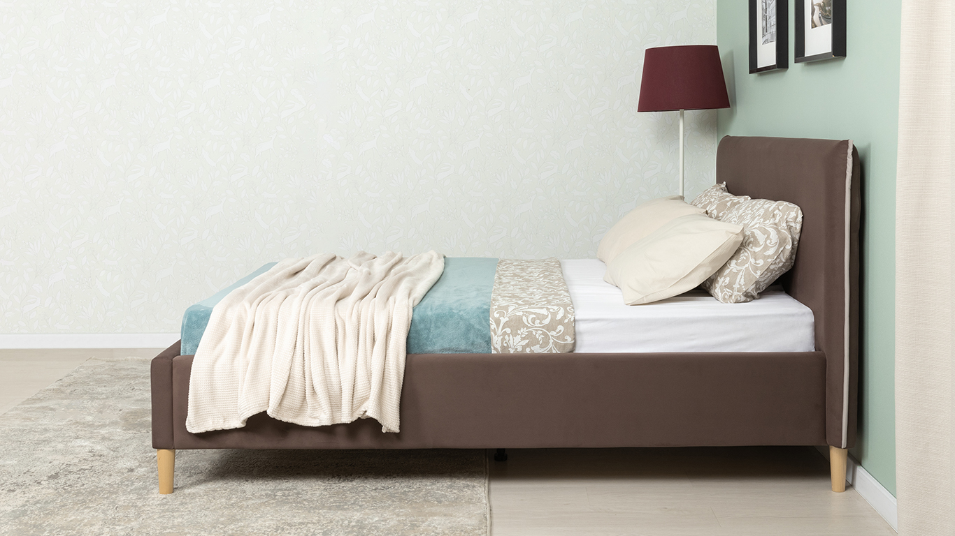 Кровать Микаса 160 велюр шоколадный, светло-серый с ортопедическим основанием и подъемным механизмом