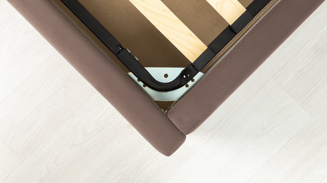Основание кровати укомплектовано матрасодержателями. Жесткое кроватное дно из МДФ 6 мм.