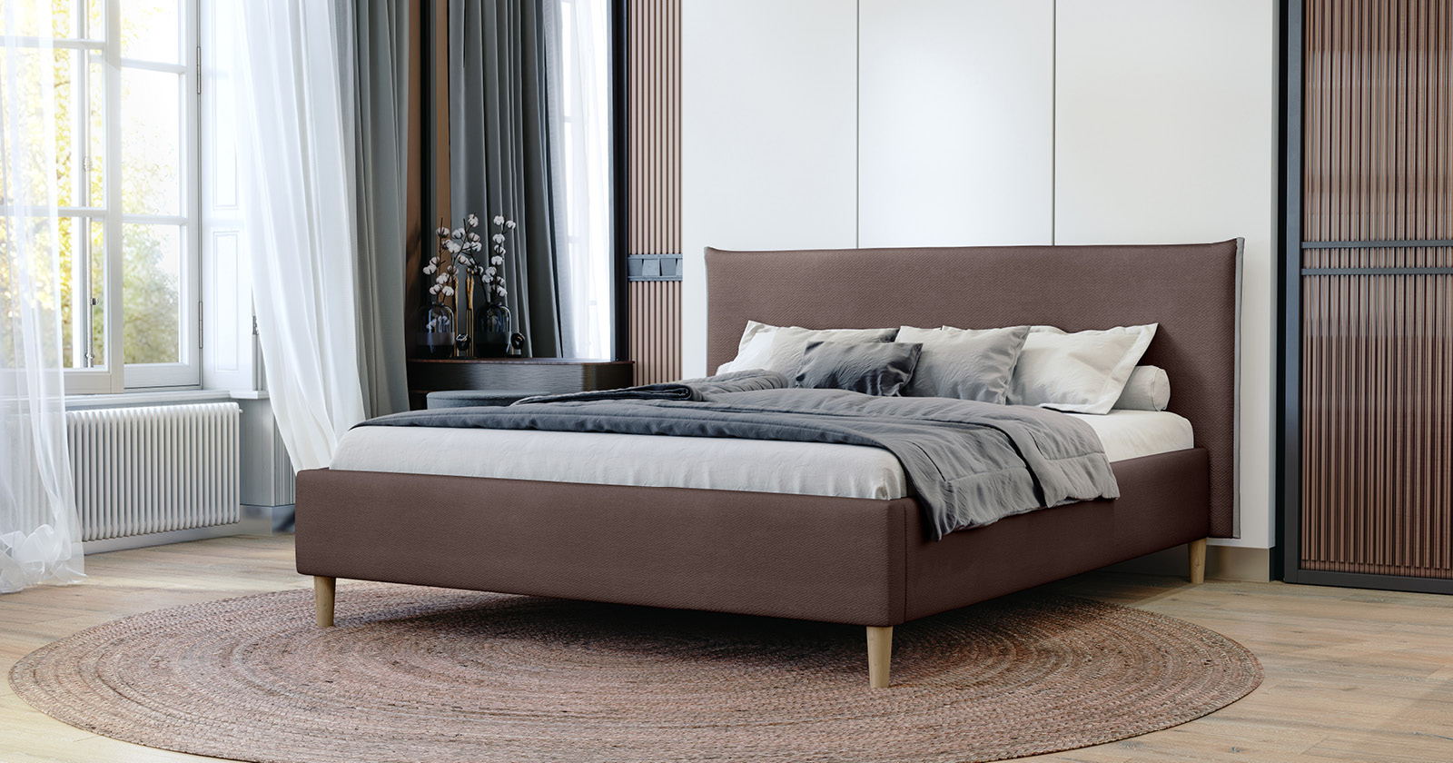 Лаконичная кровать в скандинавском стиле. Актуальный минималистичный дизайн и максимальная функциональность.
