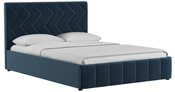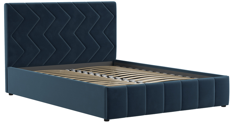 Кровать Милана 140 велюр полуночно-синий с ортопедическим основанием и подъемным механизмом