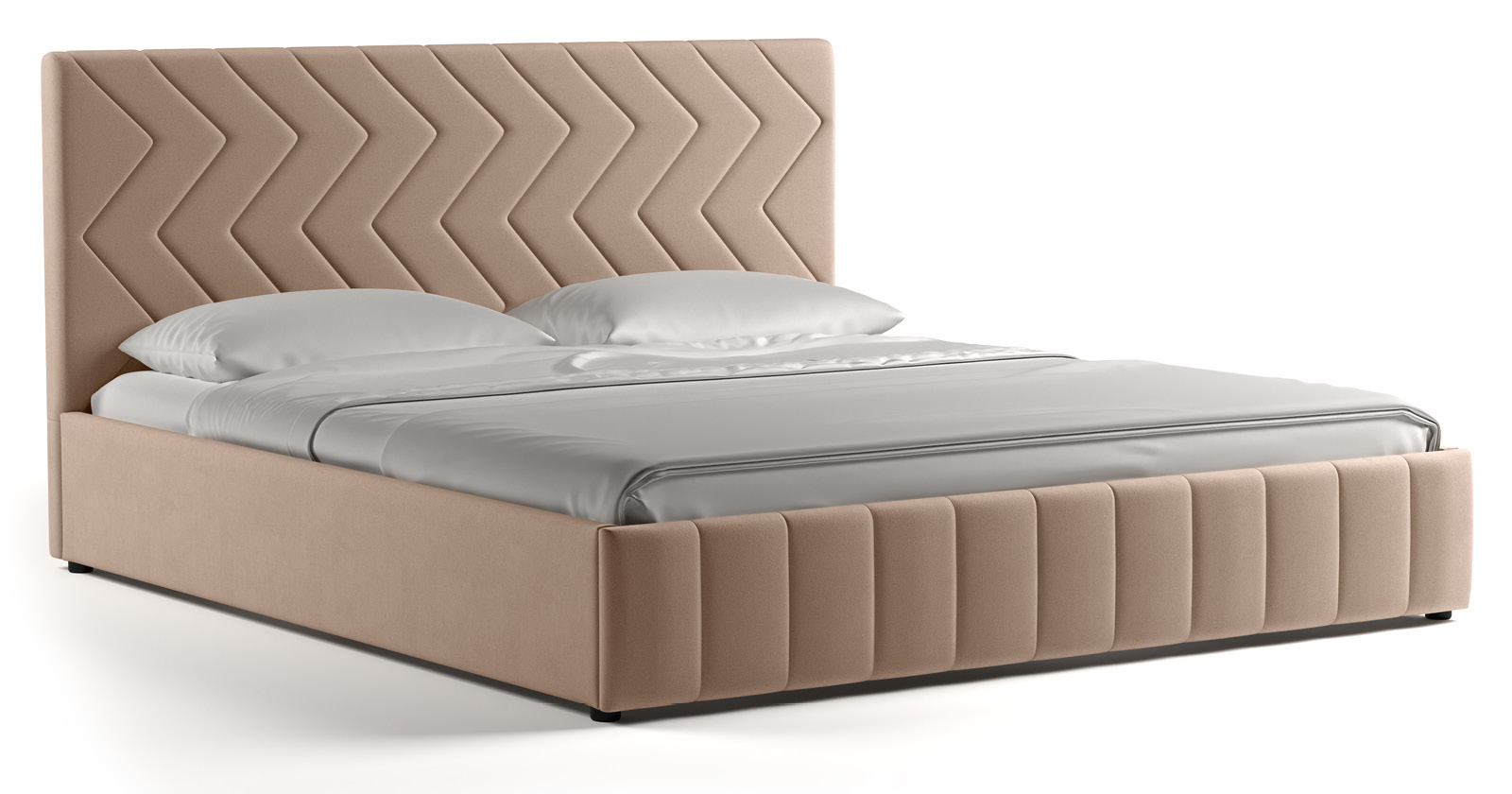 Кровать Милана 160 велюр бежевый кофейный с ортопедическим основанием и подъемным механизмом