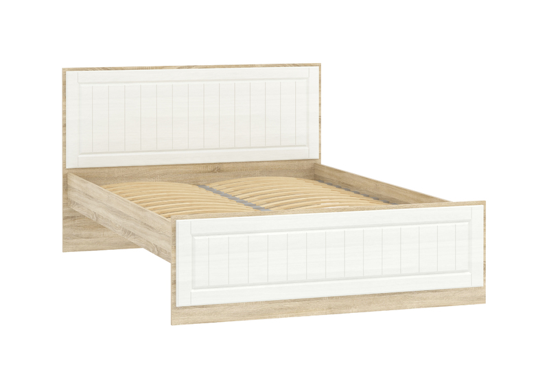 Кровать Линда 140 с ортопедическим основанием и подъемным механизмом, дуб сонома, эко 100 кожзам гранд белый