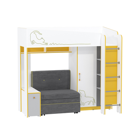 Кровать детская с диваном Альфа 11.20 солнечный свет, белый премиум, стальной серый