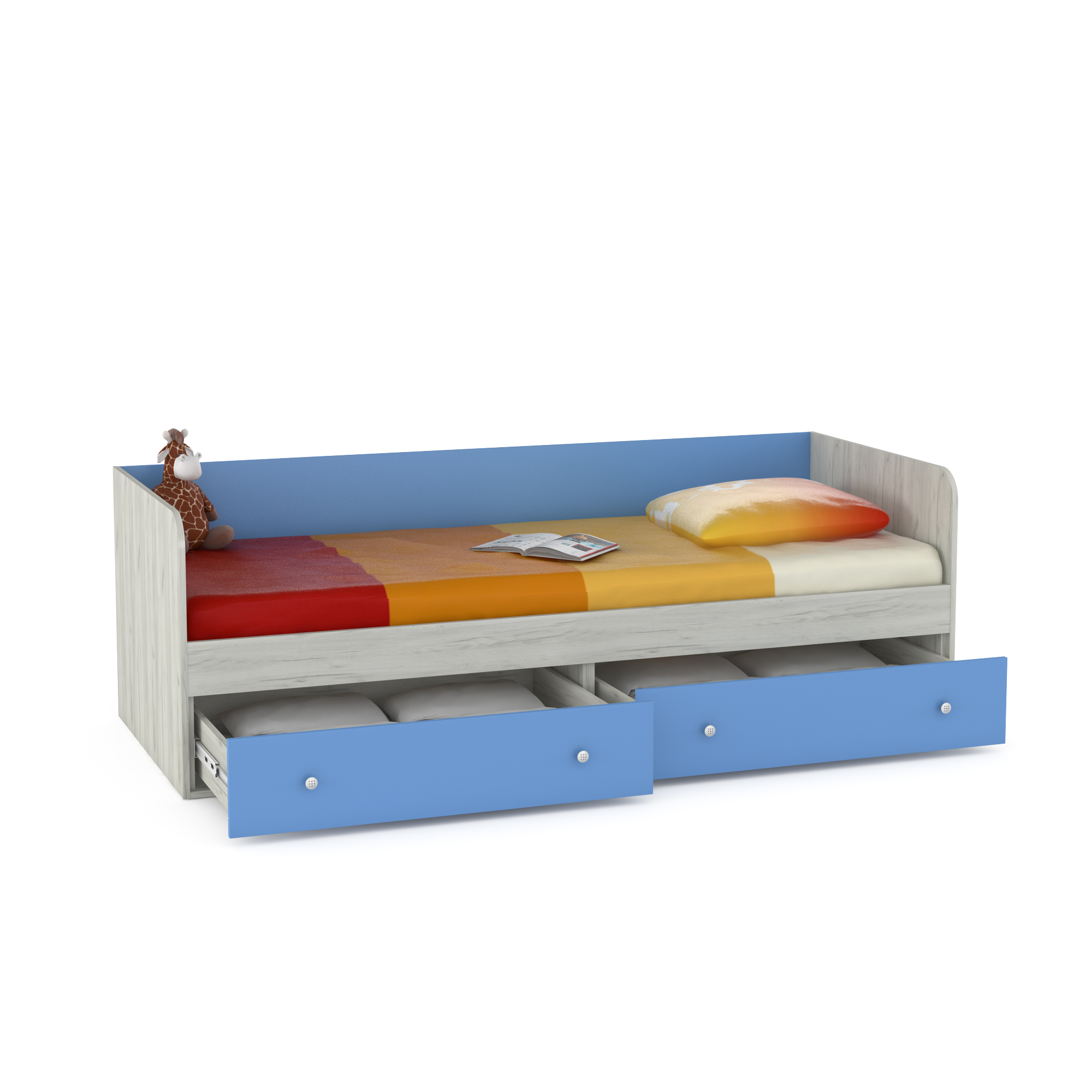 Кровать детская с ящиками Тетрис 1 347 дуб белый craft, капри синий