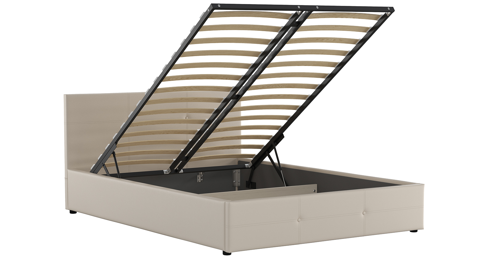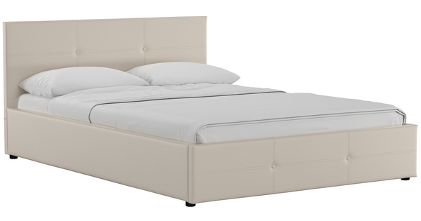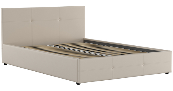 Кровать Синди 140 экокожа бежевый с ортопедическим основанием и подъемным механизмом