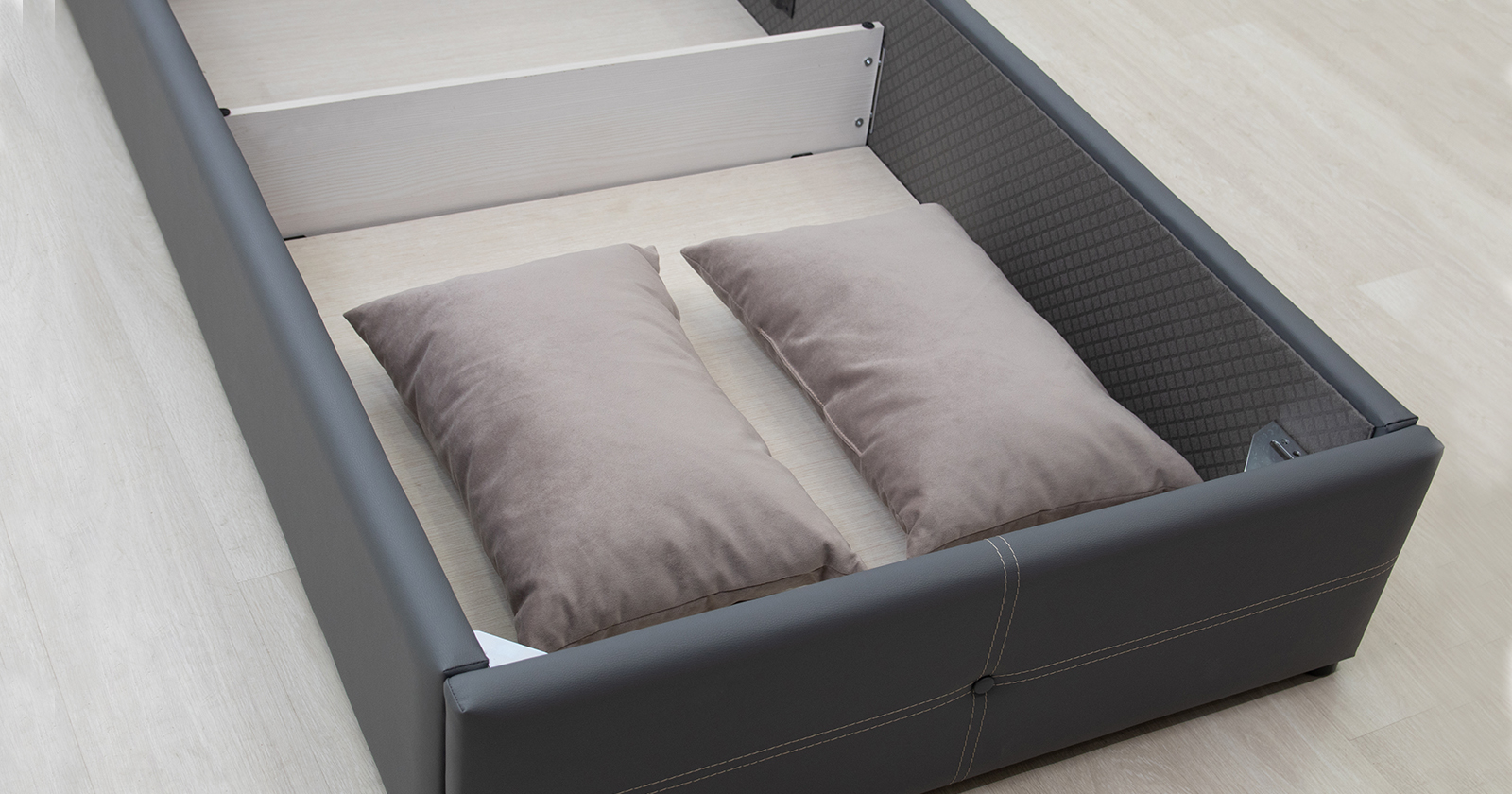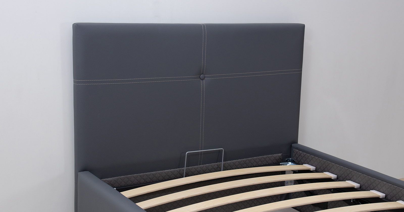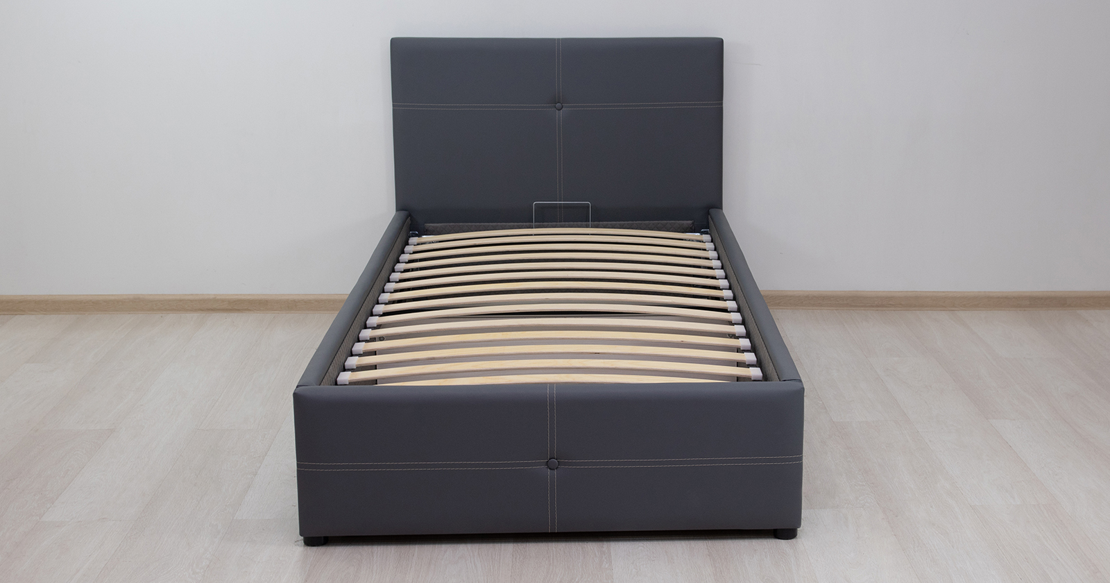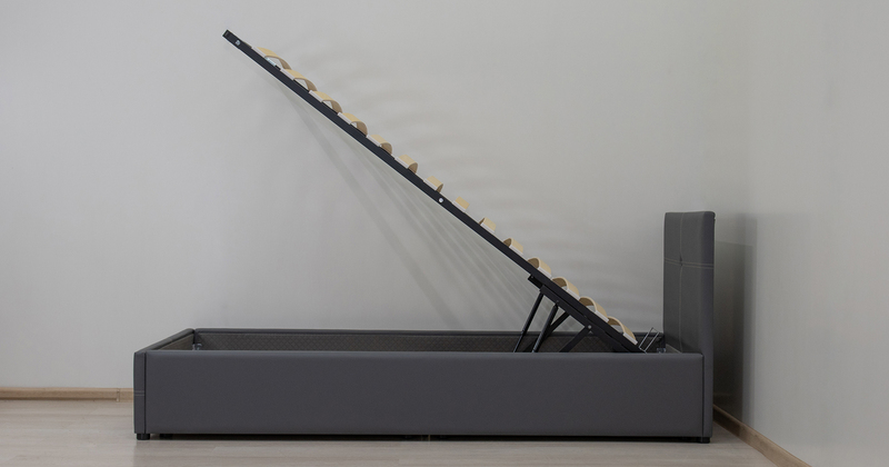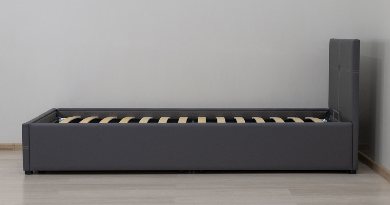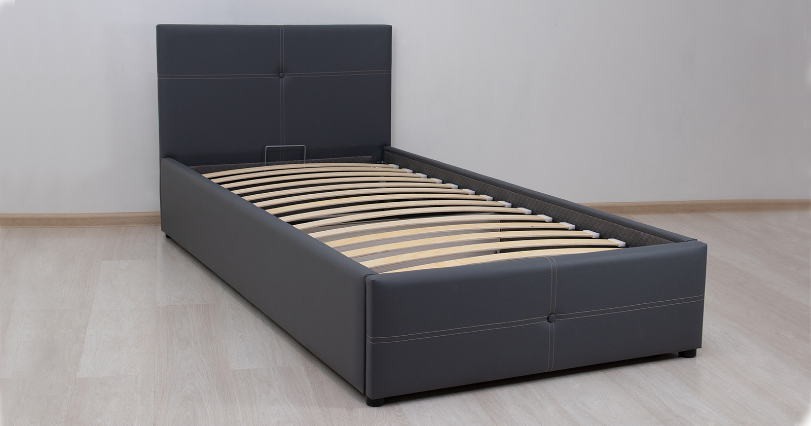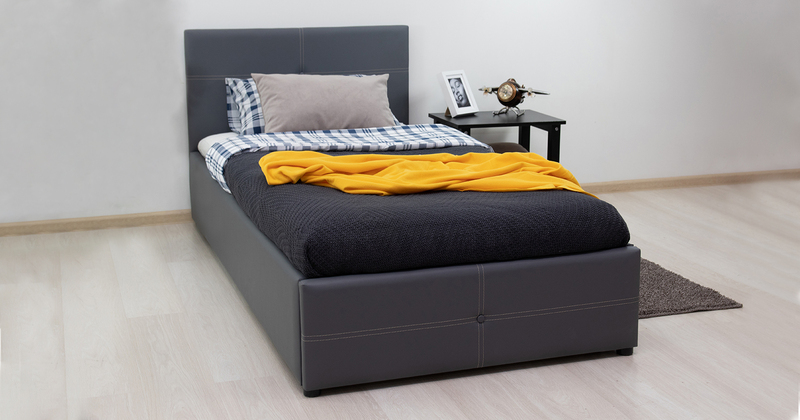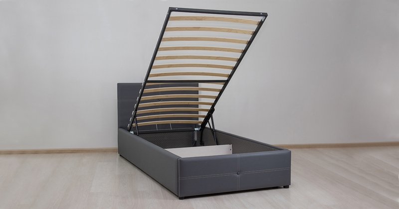 Кровать Синди 90 экокожа серый с ортопедическим основанием и подъемным механизмом
