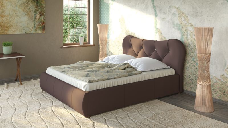 Изящная и элегантная кровать Лавита украсит Вашу спальню, стразы на изголовье добавят роскоши и грациозности Вашему интерьеру. Лавита изготовлена из кожзама, и Вы можете приобретси её либо в белом, бежевом либо тёмно-коричневом цвете. В комплект входит ортопедическое основание на берёзовых латах, кровать оснащена подъёмным механизмом.