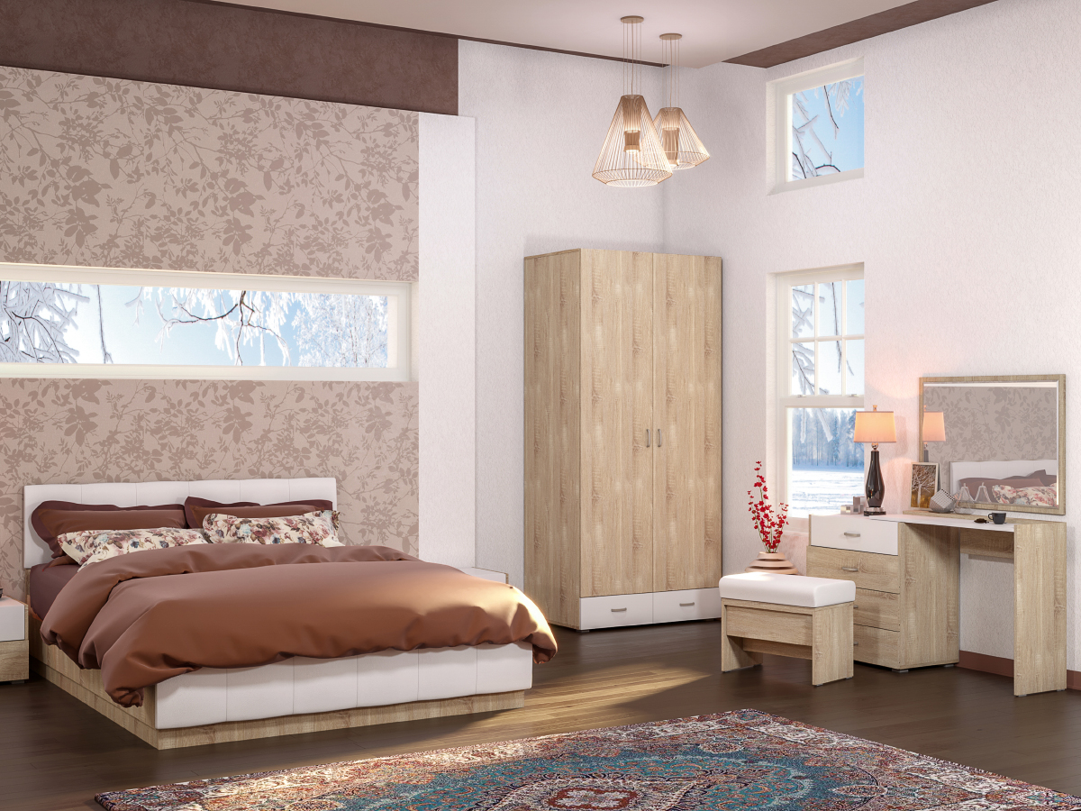 Кровать Линда 140 с ортопедическим основанием и подъемным механизмом, дуб сонома, эко 100 кожзам гранд белый