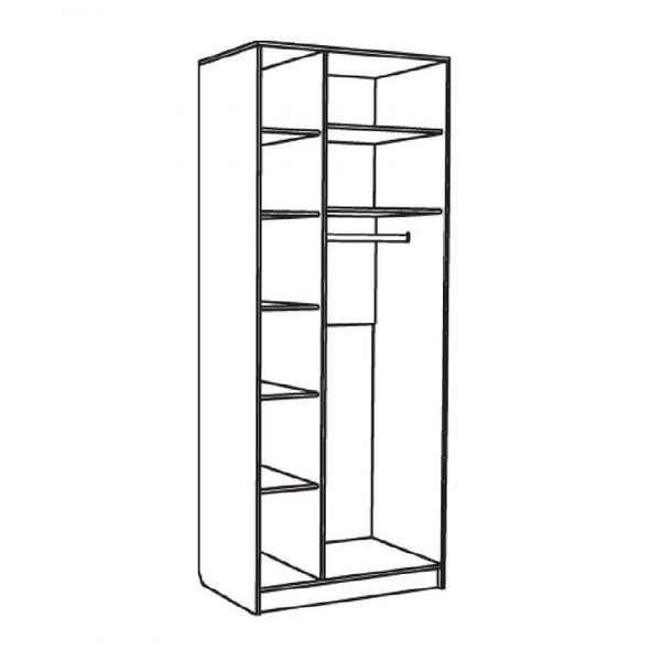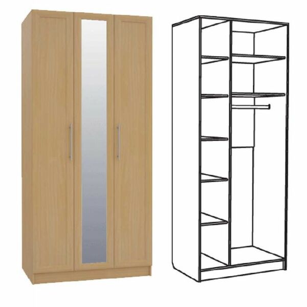 Трехстворчатый шкаф Лира 1803/02 включает в себя полки и штангу для одежды.