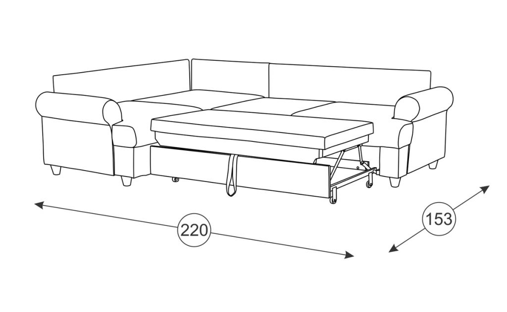 Каркас дивана выполнен из ЛДСП, фанеры, хвойного и березового бруса. Элементы сиденья и спальная часть выполнены из ППУ и блока плоских пружин «змейка». Наполнитель подушек – полиэфирное волокно. Опоры – пластик.