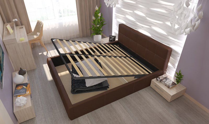 Кровать двухспальная Оскар 73-1 Коричневая 140 с ортопедическим основанием и подъемным механизмом