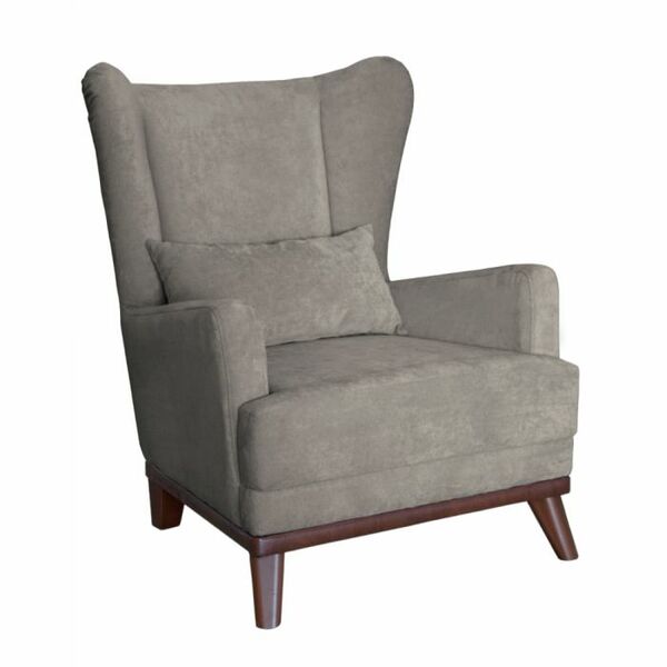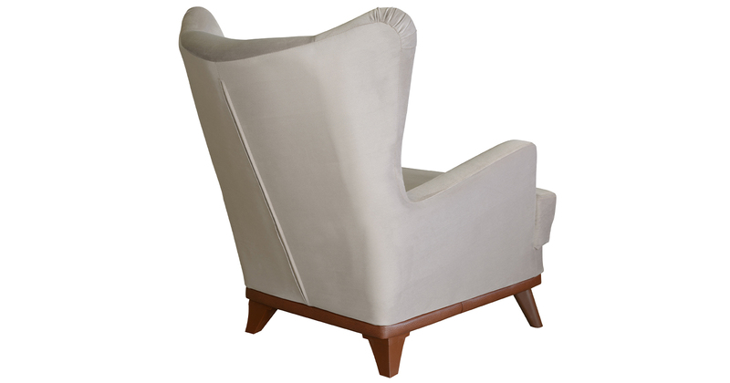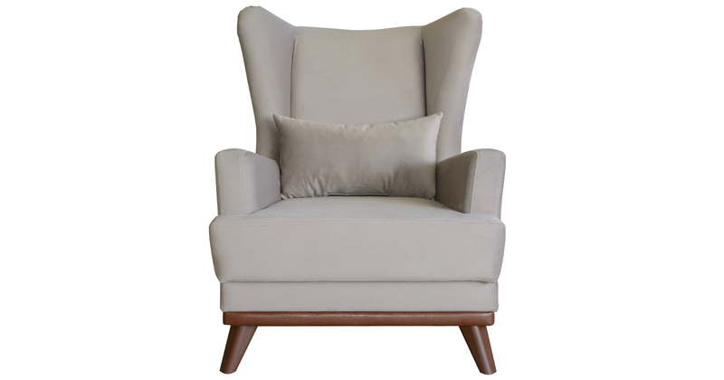 Высокая спинка с наклоном и мягкие подлокотники обеспечивают удобную посадку, дополнительный комфорт создает декоративная подушка. Царга кресла обтянута искусственной кожей в цвет опорам.